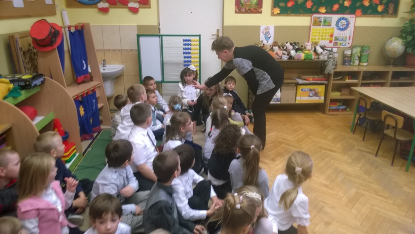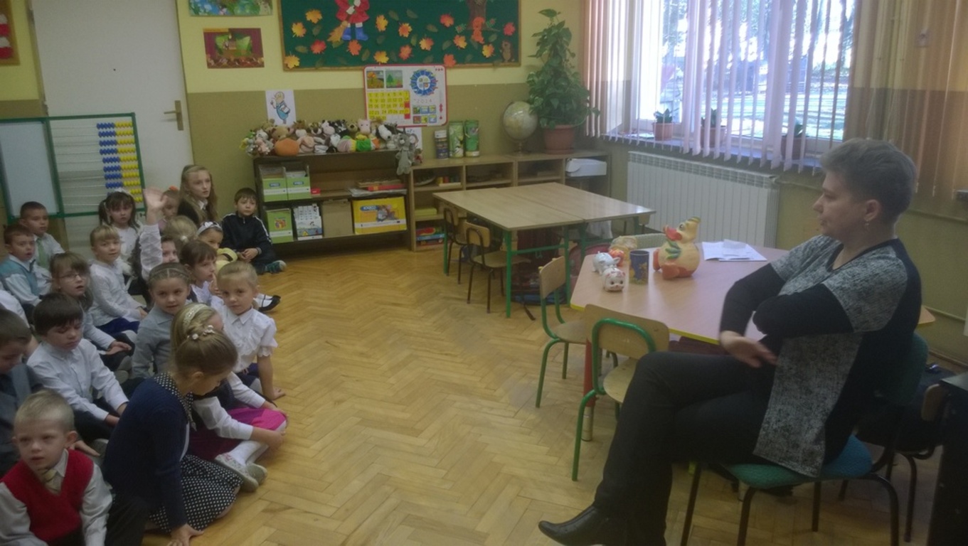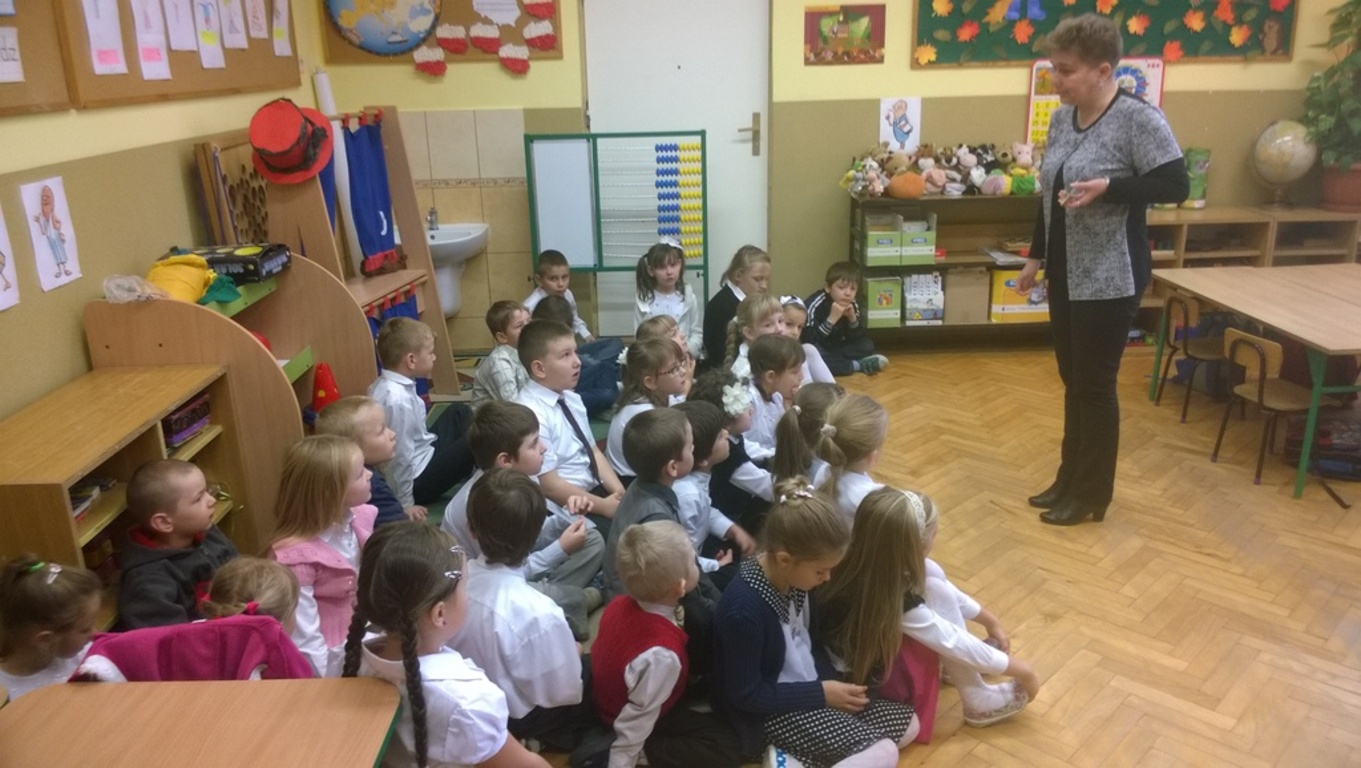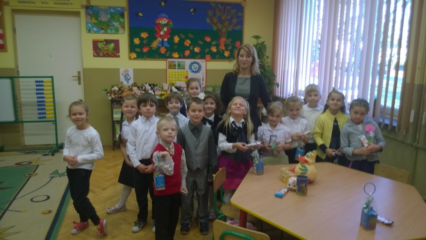 29 października 2014r. klasy IA i IB odwiedziła pani dyrektor Banku Spółdzielczego w Stubnie Mariola Świdrak. Wspólnie z dziećmi odkrywała świat pieniądza i zachęcała do oszczędzania. Dzieci przygotowały kilka wierszy i piosenkę o oszczędzaniu. Przyniosły również swoje skarbonki. Punktem kulminacyjnym spotkania było rozdanie przez panią Dyrektor książeczek SKO dla każdego dziecka z wkładem 10 zł oraz drobnych upominków. Po bardzo ciekawej lekcji wszystkie dzieci zdeklarowały się oszczędzać pieniądze w SKO. Serdecznie podziękowały pani Marioli za miłe spotkanie wręczając jej bukiet kwiatów.
