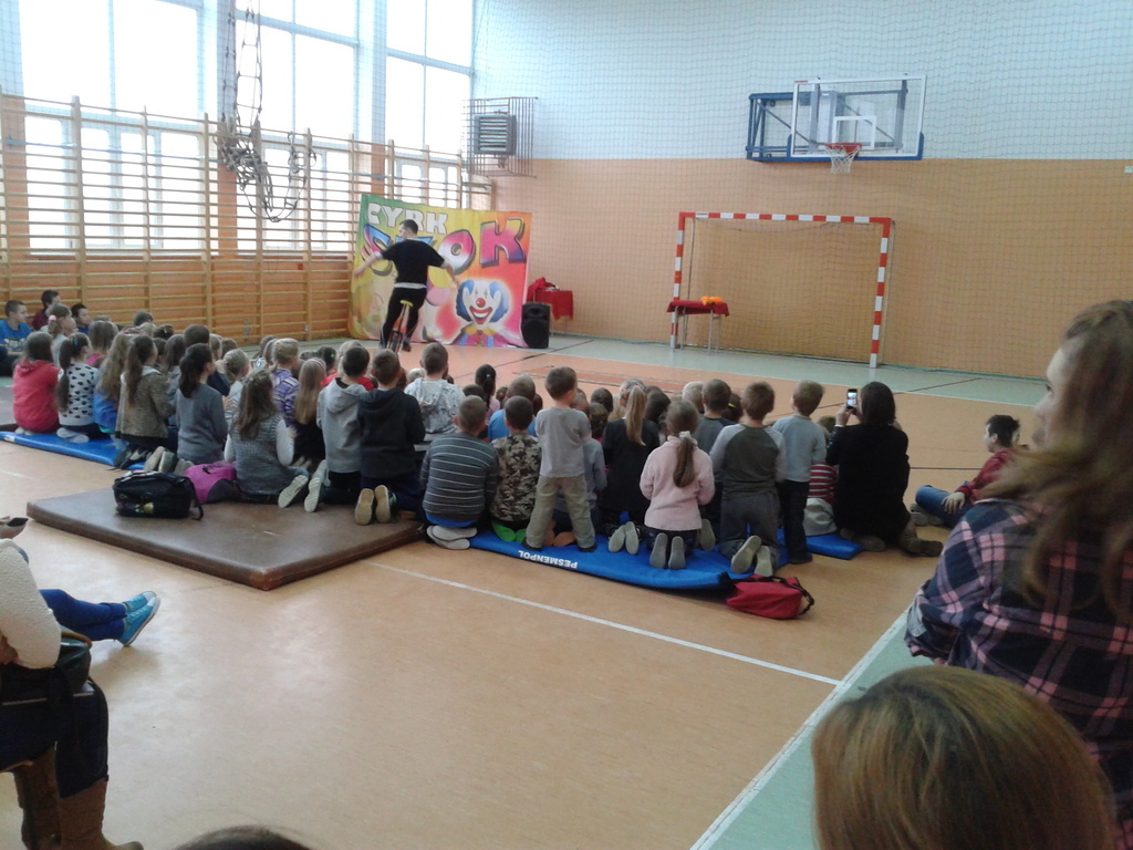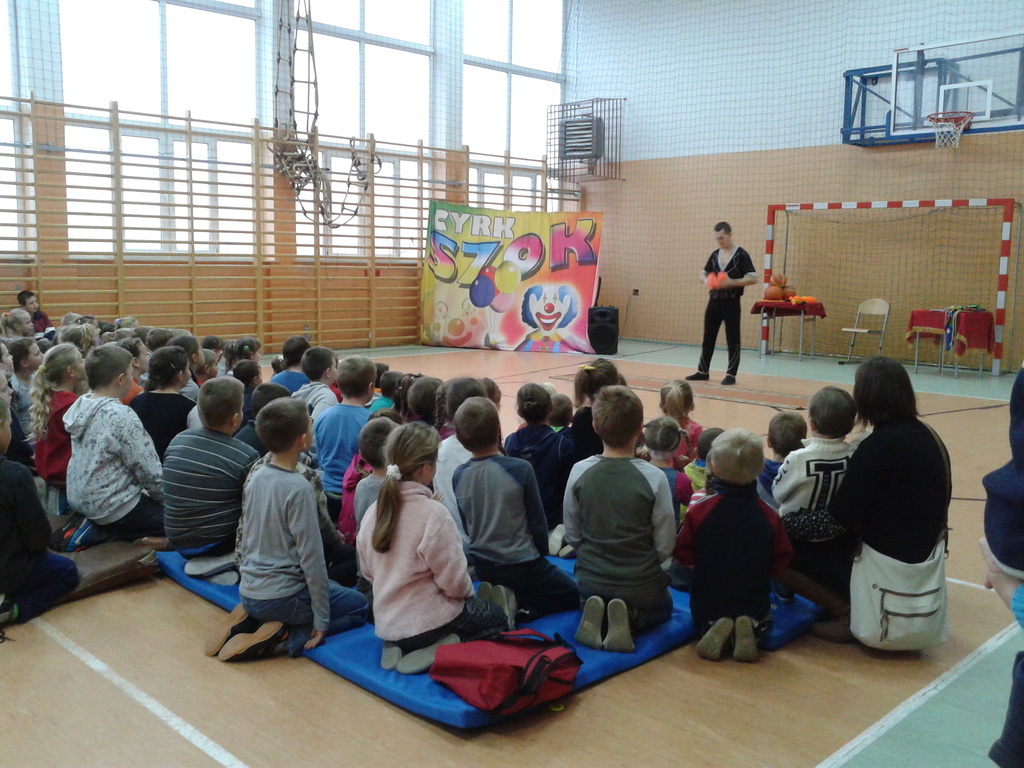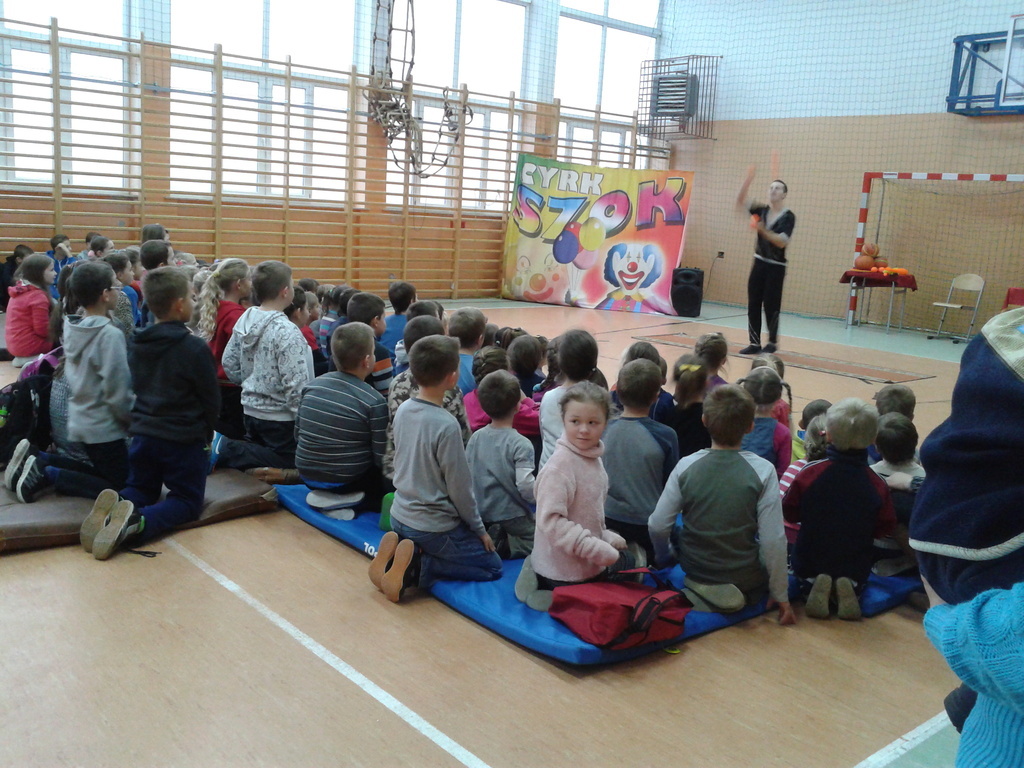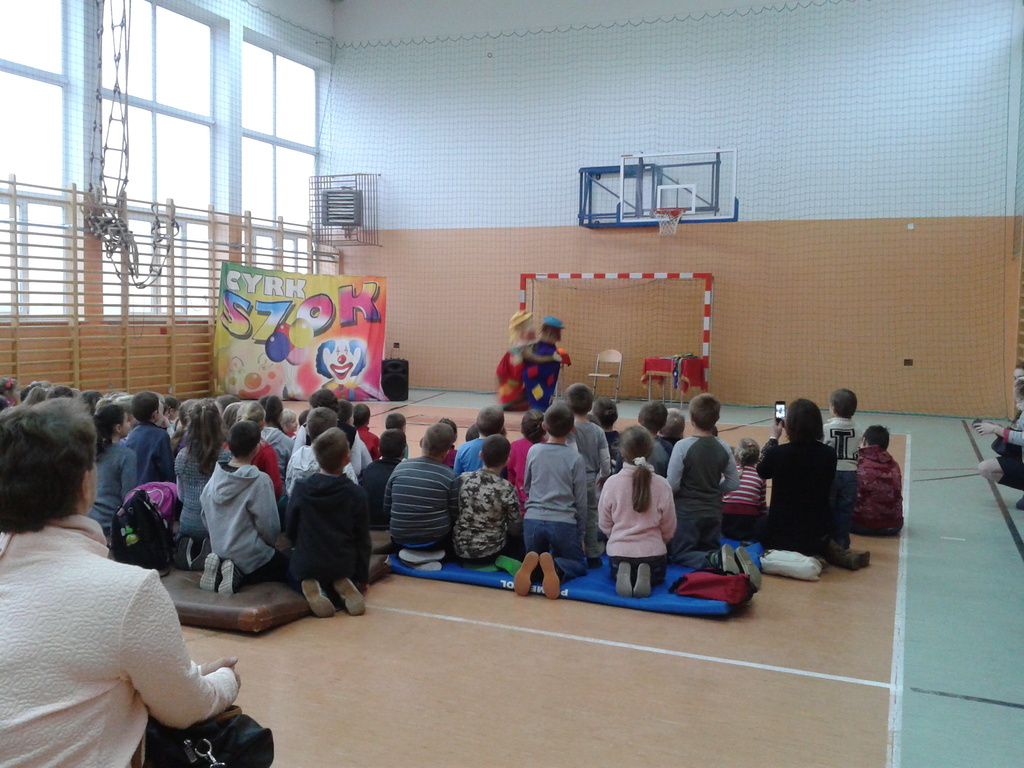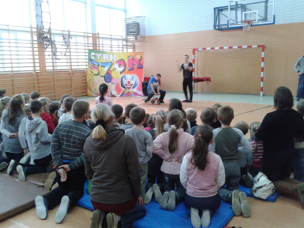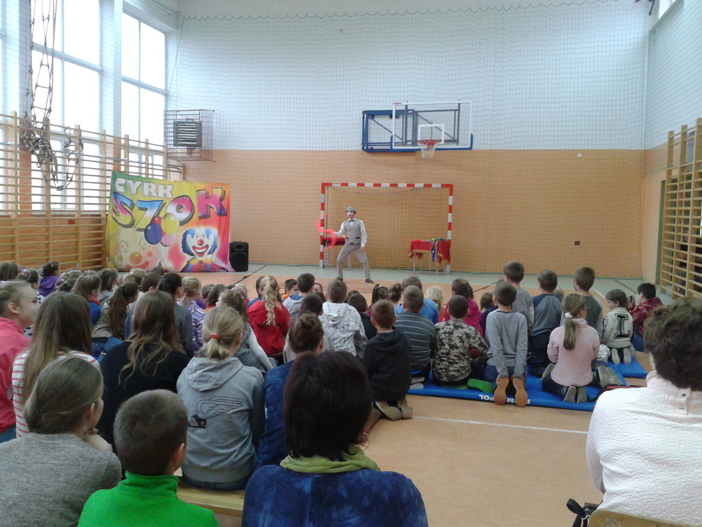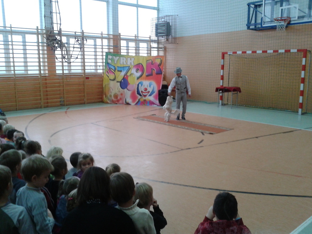 Dzisiaj, 17 listopada naszą szkołę odwiedził cyrk "Szok". NIe zabrakło licznych atrakcji, takich jak: żonglowanie piłeczkami, różne magiczne sztuczki, jazda na rowerze z jednym kołem, prawdziwy wąż i tresowany piesek. Artyści do swoich pokazów angażowali dzieci, które chętnie uczestniczyły w zabawach. Cała dziecięca publiczność świetnie się bawiła i z chęcią obejrzy jeszcze nie raz kolejne występy cyrku.
