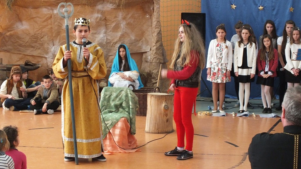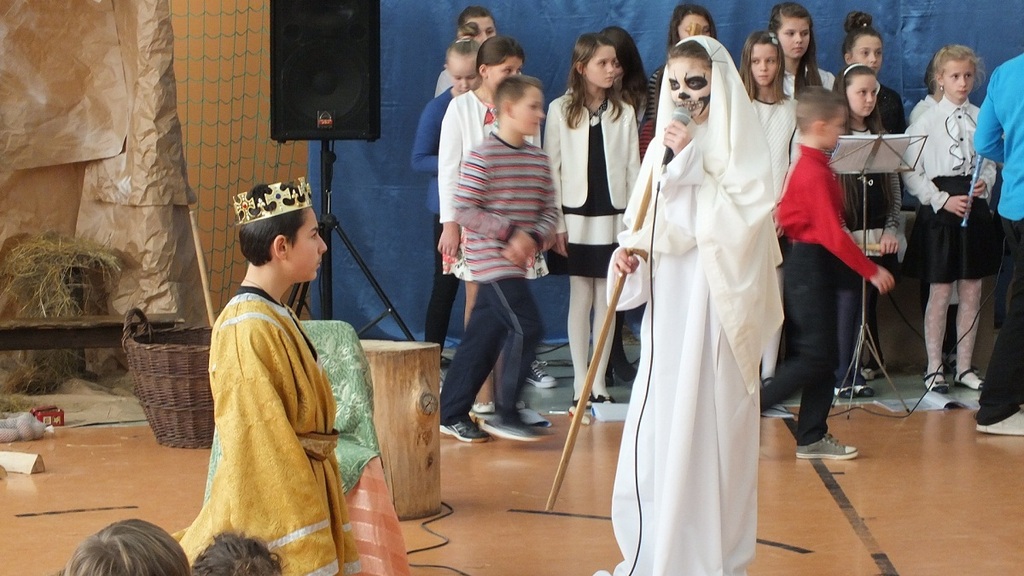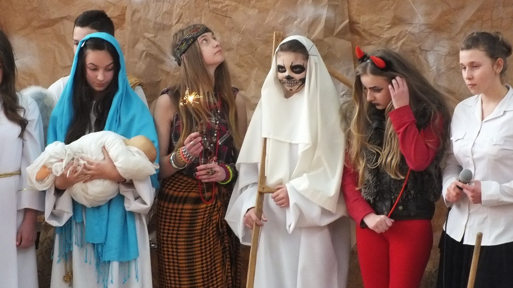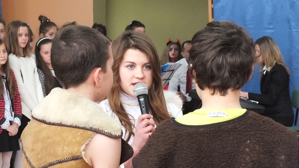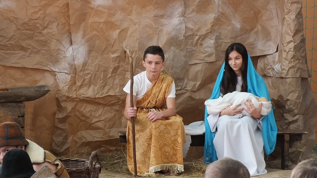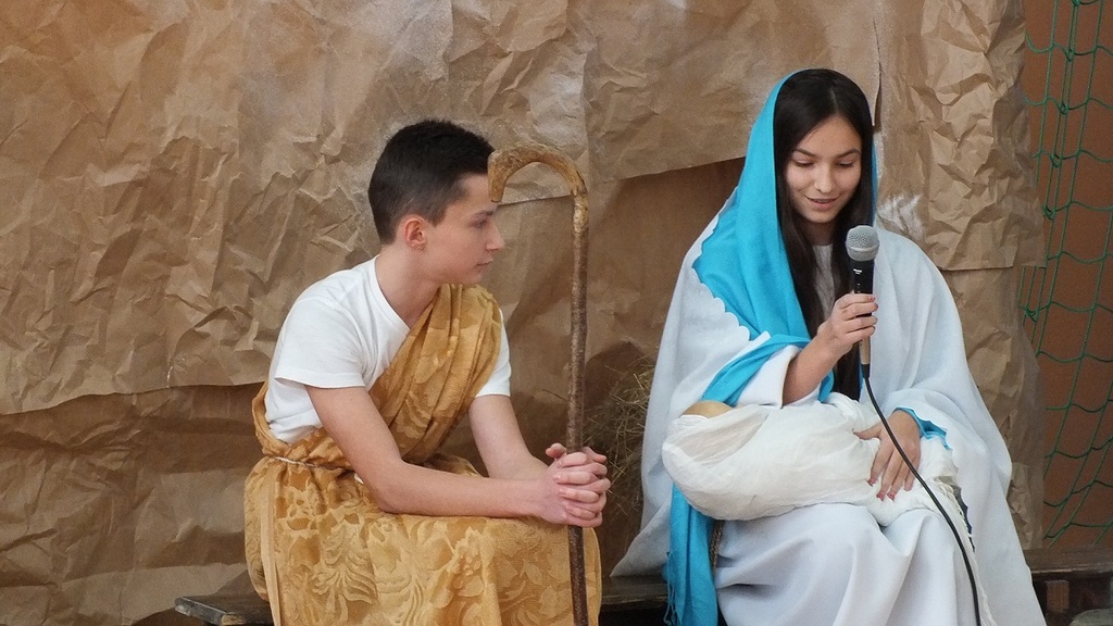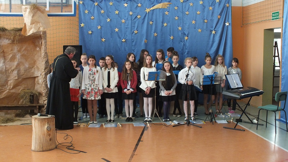 Piękną tradycją naszej szkoły jest wspólne dzielenie się opłatkiem i prosforą. Zanim 5 stycznia 2015r. p.dyrektor Stanisław Kalawski złożył pierwsze życzenia, młodzież kolędowała w dwóch językach i wystawiła Jasełka. Zebrani na sali uczniowie, nauczyciele, pracownicy szkoły, rodzice i zaproszeni goście ( dziękujemy za przybycie m.in. p. Januszowi Słabickiemu- wójtowi gminy Stubno, p. Marioli Świdrak- dyrektorce Banku Spółdzielczego w Stubnie, p. Renacie Sydorów - prezesowi stowarzyszenia " Blizej Siebie" z Kalnikowa, p. Marzenie Hasiuk- przewodniczacej Rady Rodziców i p. Elżbiecie Mac- emerytowanej nauczycielce naszej szkoły) modlili się wraz z księżmi Bogusławem Kotem i Bazylem Zabrockim. Chór do kolędowania znakomicie przygotowała p. Beata Grabas . Pomagali jej p. Swietłana Szczurek i występujący wraz z uczniami ksiądz Bazyl Zabrocki! Wszystkich oglądających szczególnie ujął występ Magdy Polny, Jakuba Chomy i Wojtka Zabłockiego. Podziękować należy klasie I gimnazjum, którzy pod opieką p. Bogusława Kosztyły " zaliczyli" dobry występ ( charakteryzowaniem aktorów zajęły się Sandra Dacko, Ewa Hajduk i Dominika Grabas). Podziękowania również dla zaprzyjaźnionego ze szkołą Tomasza Kalawskiego za obsługę techniczą występów. Jak zwykle wyróżniły się panie z Rady Rodziców przygotowując Wigilię. Wesołych Świąt i do zobaczenia w szkolnym Betlejem za rok.