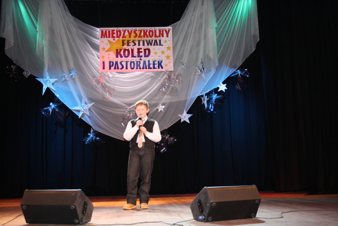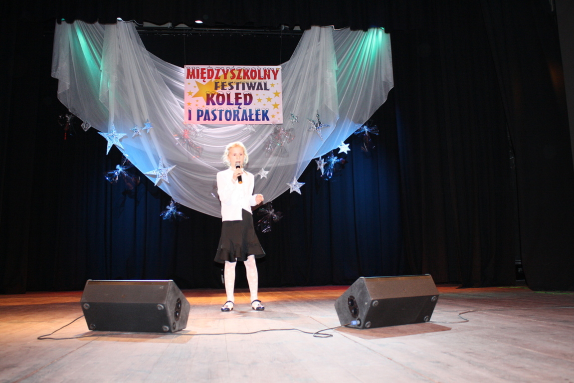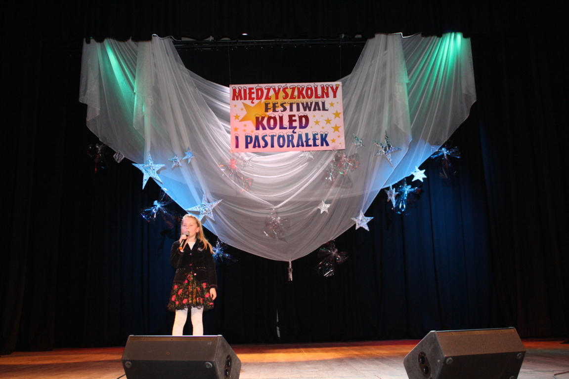 14 stycznia 2015 r. w Centrum Kulturalnym w Przemyślu odbył się IX Międzyszkolny Festiwal Kolęd i Pastorałek pod hasłem ,,W dzień Bożego Narodzenia radość wszelkiego stworzenia". W festiwalu wzięło udział 65 wykonawców szkół powiatu przemyskiego. Naszą szkołę reprezentowało trzech uczniów z kl. 4: Magdalena Polny, Kamil Wolański i Alicja Kalawska przygotowanych przez p. Beatę Grabas. Występom młodych artystów przysłuchiwało się jury w składzie: ks. Tadeusz Bartkowski - doktor muzykologii, Piotr Wajda - skrzypek, wokalista, nauczyciel oraz Jacek Marcińczak - muzyk i kompozytor. Magdalena zaśpiewała kolędę ,,Lulajże Jezuniu", Kamil - ,,Pójdźmy wszyscy do stajenki", a Alicja pastorałkę ,,Bosy pastuszek", którą wywalczyła wyróżnienie. Serdecznie gratulujemy laureatce oraz pozostałym uczniom.