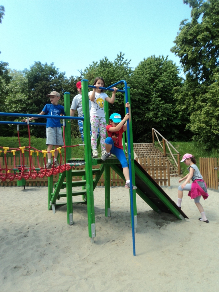 W dniu 1 czerwca klasa II wraz ze swoją wychowawczynią oraz mamą - panią Joanną Fill wybrała się na wycieczkę do Przemyśla. Atrakcje rozpoczęły się od zwiedzania Straży Pożarnej, gdzie dzieci zobaczyły wyposażenie wozów strażackich, sprzęt i ubiór strażaka przeznaczony do różnych akcji. Strażacy potrafili zachęcić wszystkich do aktywnego udziału w pokazie (również panie!). Po pobycie u strażaków dziaci udały się na Kopiec Tatarski, skąd podziwiały piękną panoramę miasta. Nie zabrakło też atrakcji na placu zabaw. Następnie ulicą Tatarską udaliśmy się do Katedry i zwiedziliśmy jej podziemia. W drodze powrotnej do busa zatrzymaliśmy się przy fontannie u niedźwiadków i przy wojaku Szwejku. Do domu wróciliśmy zadowoleni i szczęśliwi, chociaż bardzo zmęczeni.