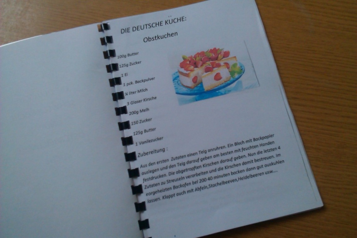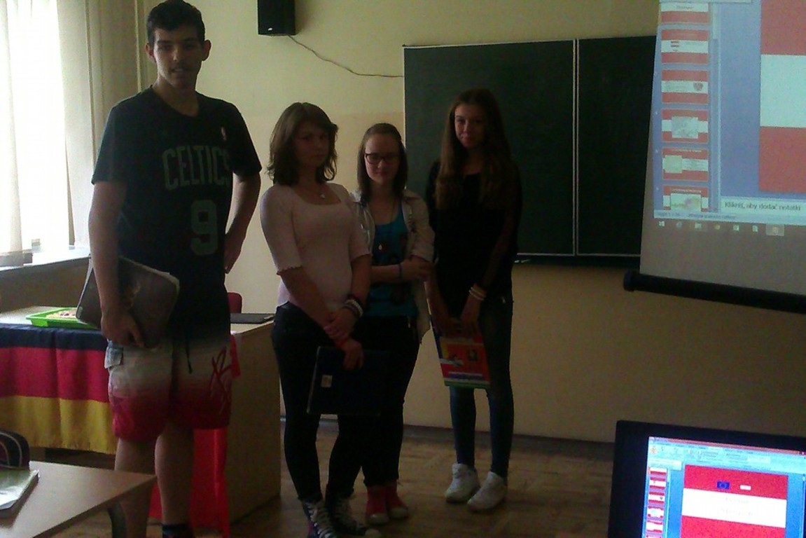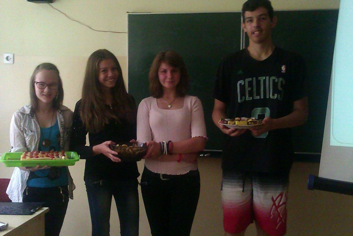 W dniu 16 czerwca 2015r. uczniowie klasy II gimnazjum w składzie: Tomasz Domeredzki, Agnieszka Grabas, Ewa Solarczyk i Patrycja Sydorów zaprezentowali swoim kolegom i koleżankom z gimnazjum projekt edukacyjny z języka niemieckiego "Tradycyjne potrawy, produkty regionalne w Niemczech, Austrii i Szwajcarii.” Oprócz prezentacji multimedialnej, uczniowie opracowali książkę kucharską w języku niemieckim, którą można obejrzeć w bibliotece szkolnej. Dopełnieniem przekazu treści była degustacja: niemieckich kruchych rogalików migdałowych, austriackiego placka z owocami oraz szwajcarskiego placka czekoladowego.