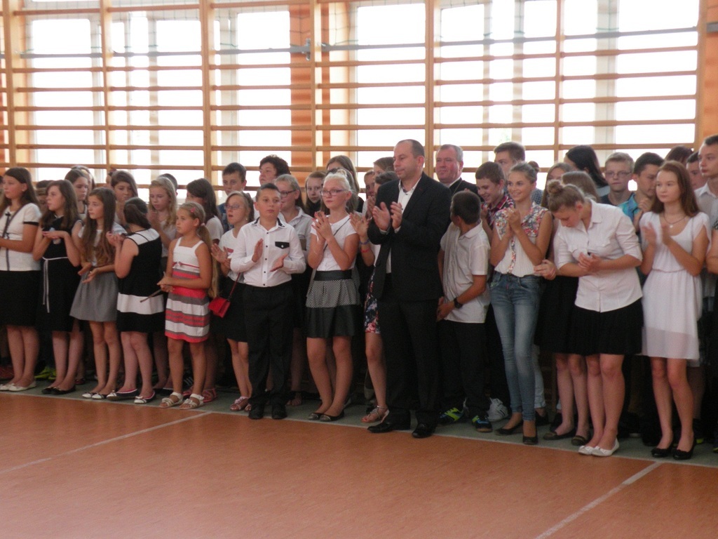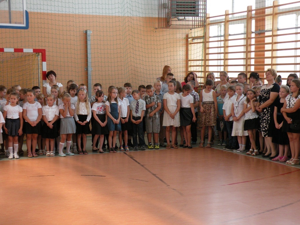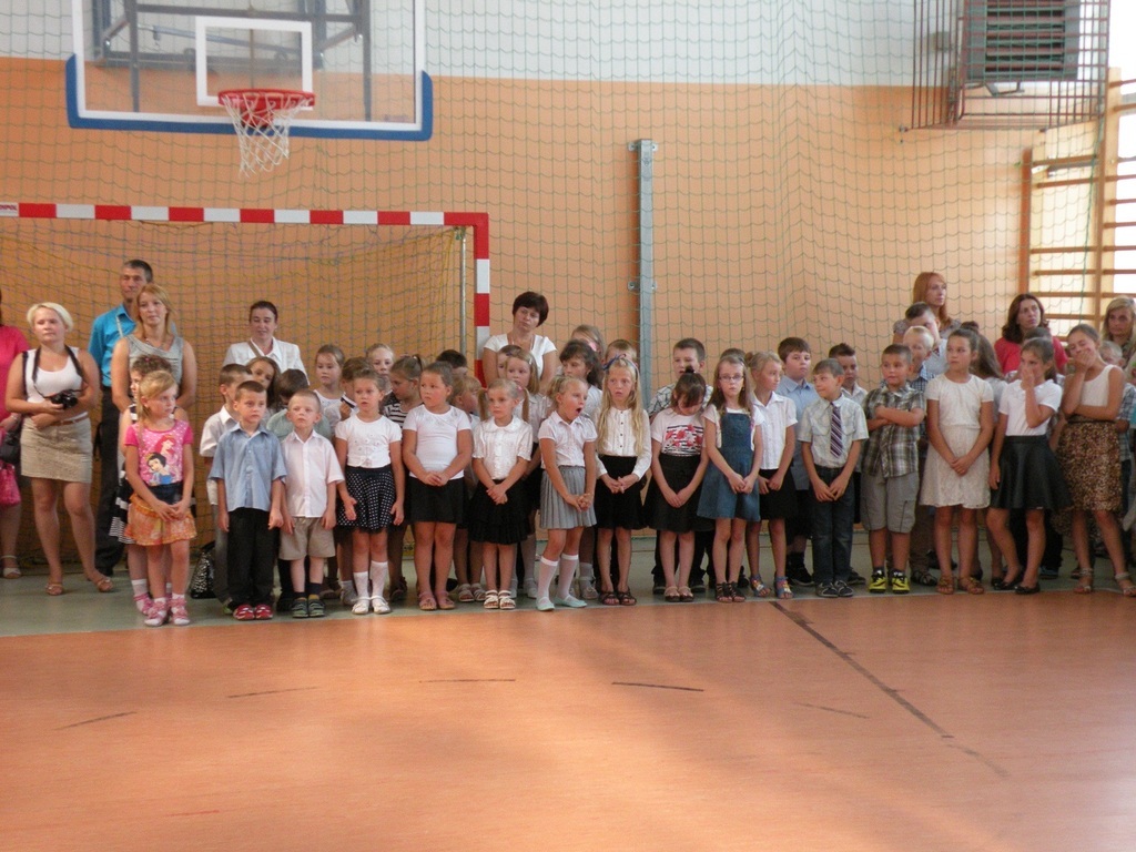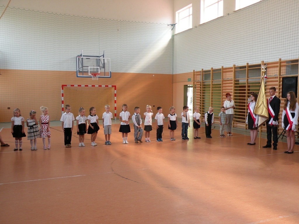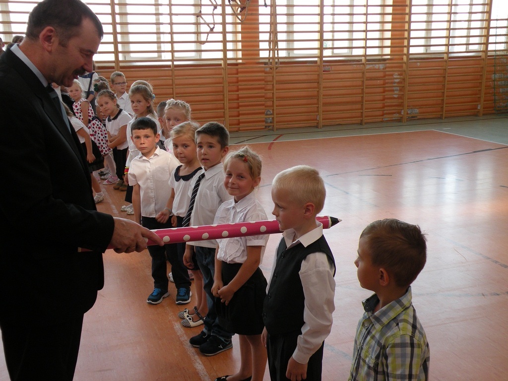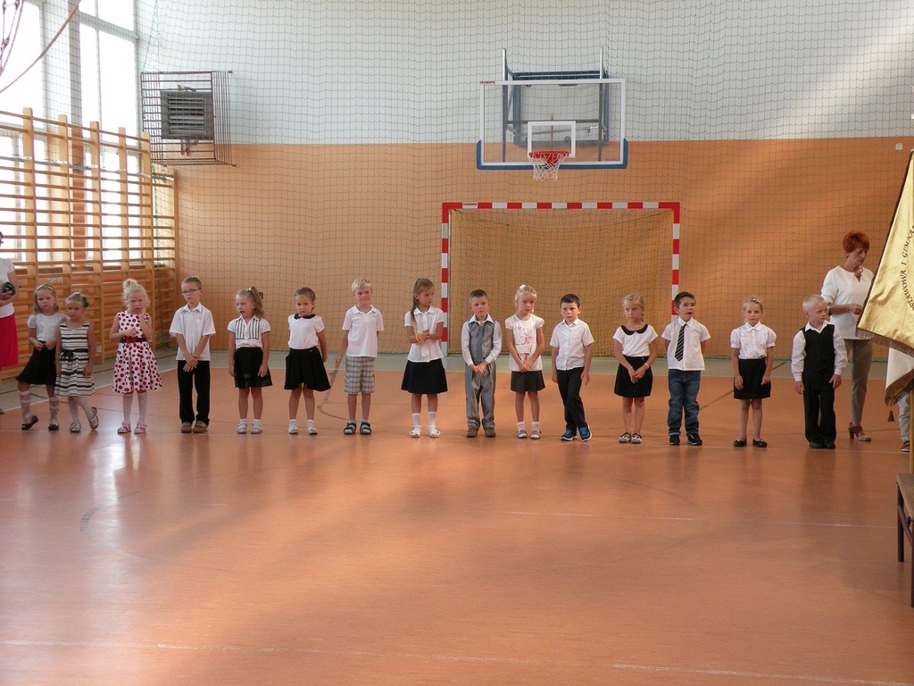 Po najbardziej upalnych wakacjach jakie kiedykolwiek były, szczęśliwie wróciliśmy do szkoły. 1 września 2015 r. też było gorąco, 35 stopni! O 10.30 zabrzmiał uroczysty dzwonek. Dzwoniła Joanna Hasiuk - prowadząca apel. Pan Janusz Słabicki - wójt naszej gminy, wręczył panu dyrektorowi Stanisławowi Kalawskiemu nominację na stanowisko dyrektora na kolejne pięć lat. Decyzję tę przyjęto gromkimi brawami. Nowy ( stary ) pan dyrektor przywitał wszystkich serdecznie, życzył sukcesów w nowym roku szkolnym, podziękował panu Witkowi Balandykowi za przeprowadzony remont sal lekcyjnych , a następnie dokonał aktu pasowania klasy I. Pod przewodnictwem wychowawczyni pani Genowefy Dwornik, w asyście pocztu sztandarowego ( Krzysztof Sadowy - chorąży, Agnieszka Grabas i Ewa Solarczyk - asysta) i na oczach pozostałych zebranych pierwszoklasiści zostali przyjęci w poczet uczniów szkoły. Gratulujemy! A tak w ogóle miło było się spotkać po wakacjach. Jutro pierwsze lekcje!