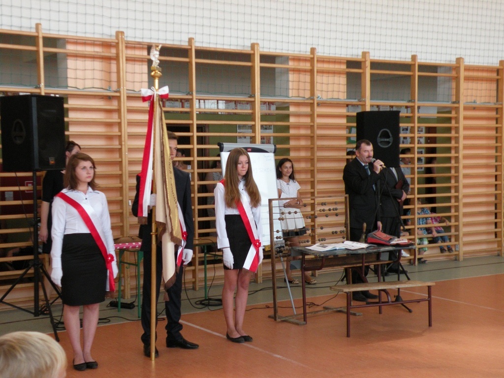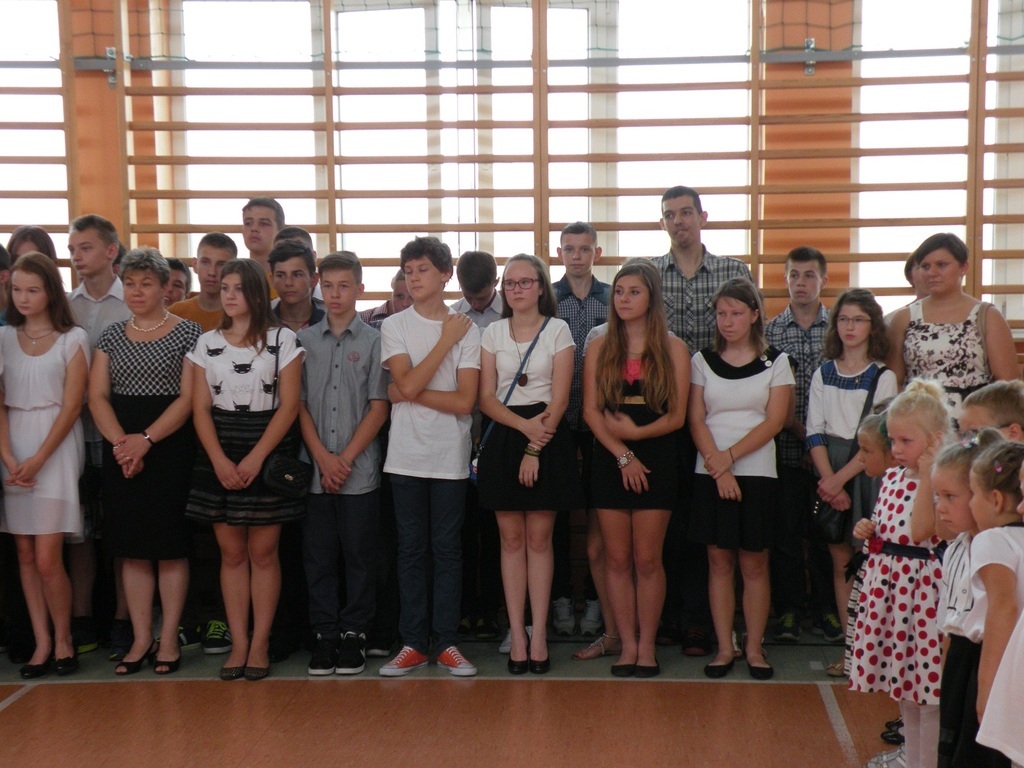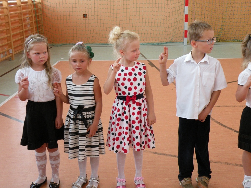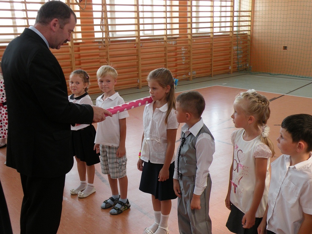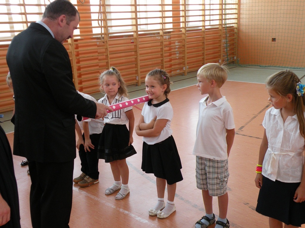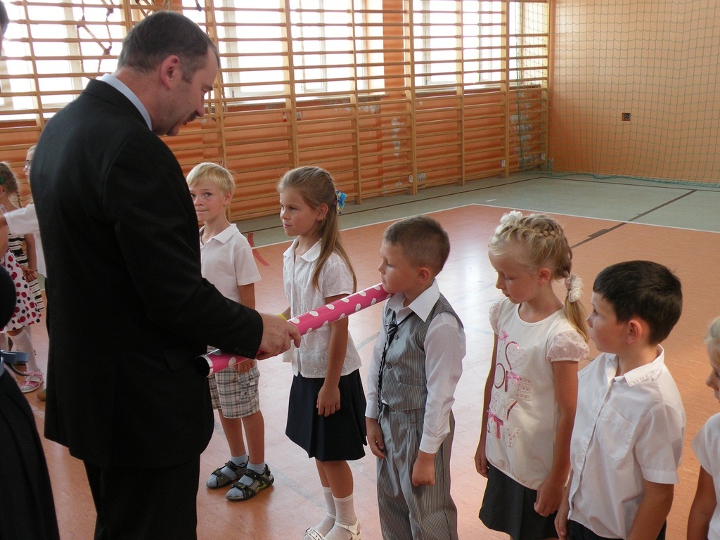 Po najbardziej upalnych wakacjach jakie kiedykolwiek były, szczęśliwie wróciliśmy do szkoły. 1 września 2015 r. też było gorąco, 35 stopni! O 10.30 zabrzmiał uroczysty dzwonek. Dzwoniła Joanna Hasiuk - prowadząca apel. Pan Janusz Słabicki - wójt naszej gminy, wręczył panu dyrektorowi Stanisławowi Kalawskiemu nominację na stanowisko dyrektora na kolejne pięć lat. Decyzję tę przyjęto gromkimi brawami. Nowy ( stary ) pan dyrektor przywitał wszystkich serdecznie, życzył sukcesów w nowym roku szkolnym, podziękował panu Witkowi Balandykowi za przeprowadzony remont sal lekcyjnych , a następnie dokonał aktu pasowania klasy I. Pod przewodnictwem wychowawczyni pani Genowefy Dwornik, w asyście pocztu sztandarowego ( Krzysztof Sadowy - chorąży, Agnieszka Grabas i Ewa Solarczyk - asysta) i na oczach pozostałych zebranych pierwszoklasiści zostali przyjęci w poczet uczniów szkoły. Gratulujemy! A tak w ogóle miło było się spotkać po wakacjach. Jutro pierwsze lekcje!
