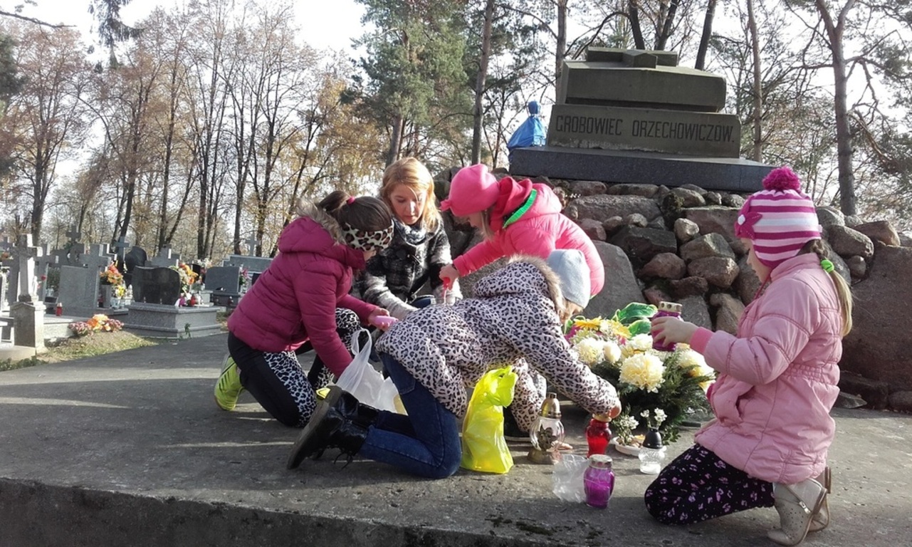 Przełom października i listopada to czas , w którym uczniowie i nauczyciele odwiedzają kalnikowskie cmentarze. Większośc klas w tym czasie zapaliła znicze na rodzinnym grobowcu patrona szkoły p. Boleslawa Orzechowicza, grobie księdza Kazimierza Florka i na grobie przedwojennego dyrektora szkoły p. Grzegorza Dziubińskiego. W tym roku reprezentując Samorząd Uczniowski grobowiec Orzechowiczów porządkowała klasa I gimnazjum. Szczególne podziękowania należą się uczniom gimnazjum , którzy w sobotę 31.10.2015 r. porządkowali cmentarz wojenny.
