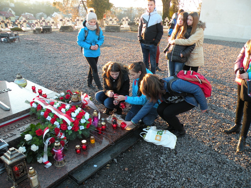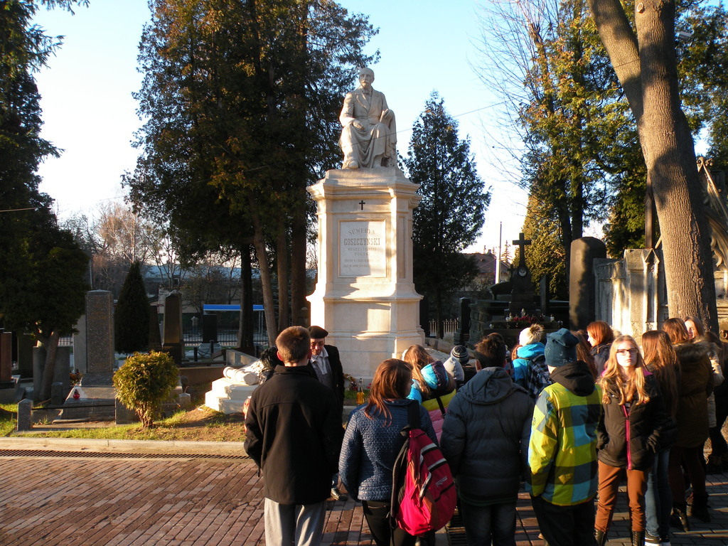W dniu 11.12.2015 r odbyła się wycieczka do Lwowa, min. do zaprzyjaźnionej szkoły nr 92. W wycieczce wzięło udział 25 osób pod opieką p. Swietłany Szczurek, p. Krzysztofa Fier, oraz p. Dariusza Lasek. Nasza wizyta była miłą konsekwencją zorganizowanych przez nas w maju, tego roku Integracyjnych Spotkań Polsko – Ukraińskich w Kalnikowie. Przyjechaliśmy bowiem na zaproszenie Dyrektora oraz grona pedagogicznego szkoły nr 92 we Lwowie. Przyjęto nas bardzo entuzjastycznie, w ramach przywitania nas, przygotowano akademię , w której dzieci i młodzież ukraińska w języku polskim zaśpiewała piosenki oraz zaprezentowała taniec baletowy. Następnie Dyrektor oprowadził nas po szkole. W miedzy czasie nasza młodzież miała okazję rozmawiać z rówieśnikami z Ukrainy, nawiązując ciekawe kontakty. Następnie udaliśmy się do centrum miasta, by zwiedzić zabytki kultury Lwowa oraz Cmentarz Łyczakowski, nie zapomnieliśmy zapalić zniczy na grobach Orląt Lwowskich.