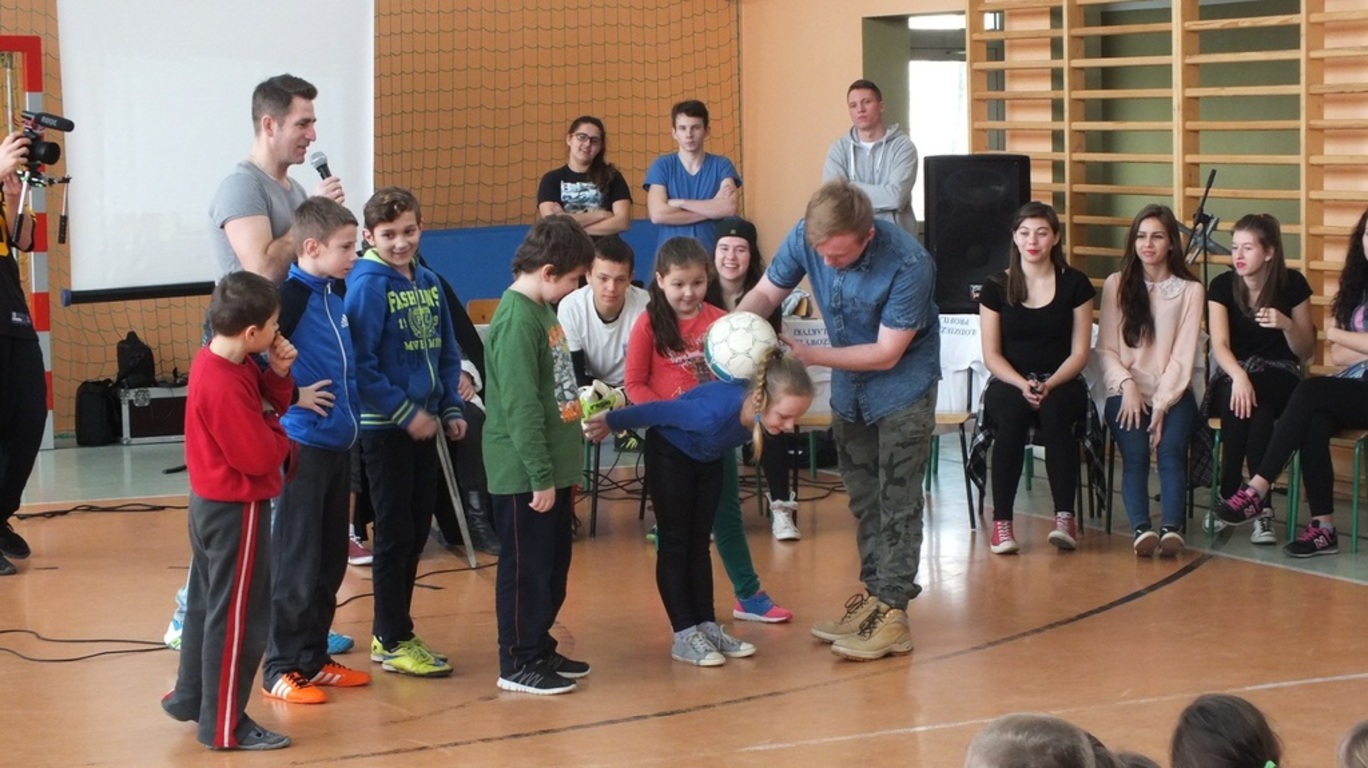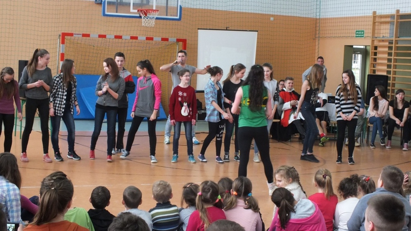 Dzięki p. Dariuszowi Laskowi naszemu pedagogowi po raz kolejny mieliśmy przyjemność gościć Liderów Towarzystwa Przyjaciół Dzieciom ( TPD) z Przemyśla. Liderzy to grupa zwykłych ( niezwykłych ) młodych ludzi , którzy wraz panem Darkiem w sposób wyjątkowy i atrakcyjny propaguje zdrowy, wolny od nałogów, nastawiony na rozwój zainteresowań tryb życia. 2 lutego 2016r. od godziny 10.00 pokazywali i opowiadali o tym co ich " kręci" ( m.in. piłka nożna, taniec, śpiew ). Wzbudzili zachwyt i podziw ( rozdali dziesiątki autografów). A my zapatrzeni w Liderów sami szukaliśmy odpowiedzi na pytanie: W czym my ( każdy z nas) możemy być najlepsi? W czym możemy osiągnąć mistrzostwo? Dziękujemy przyjaciołom z TPD za postawienie nam tego pytania.