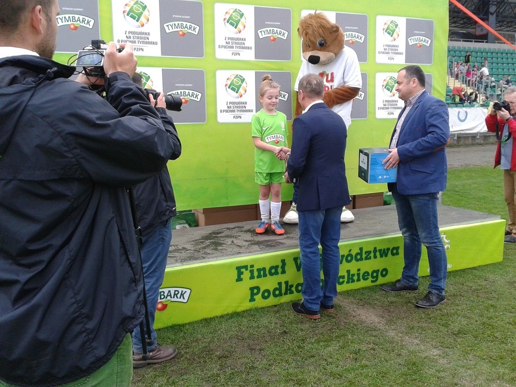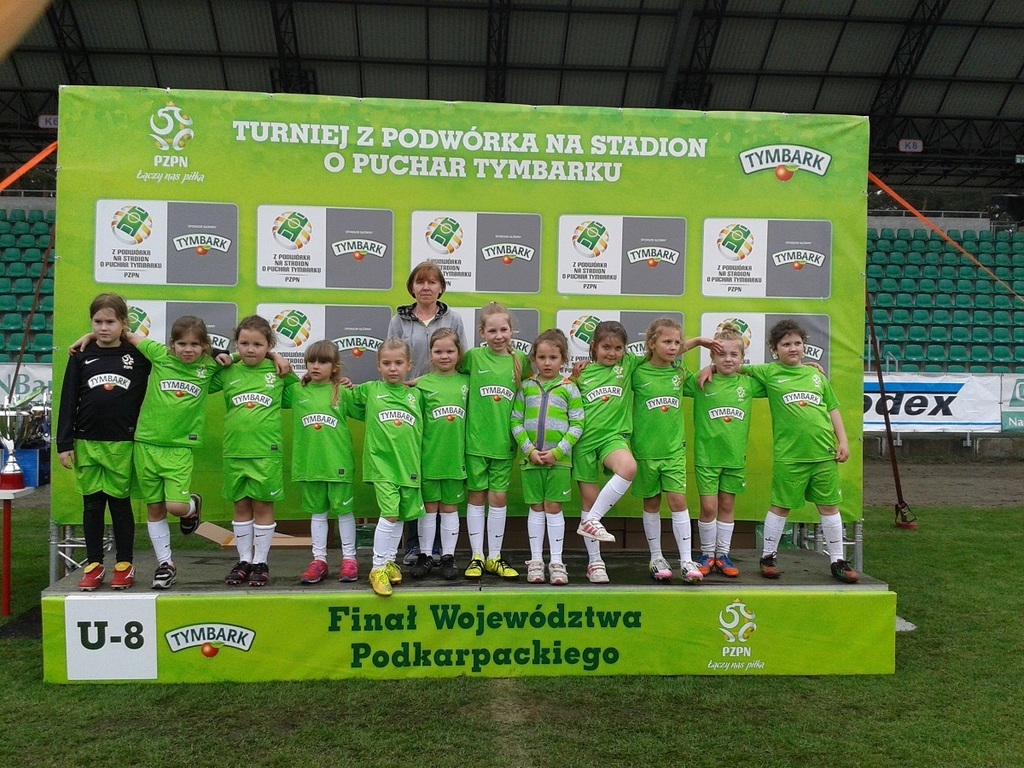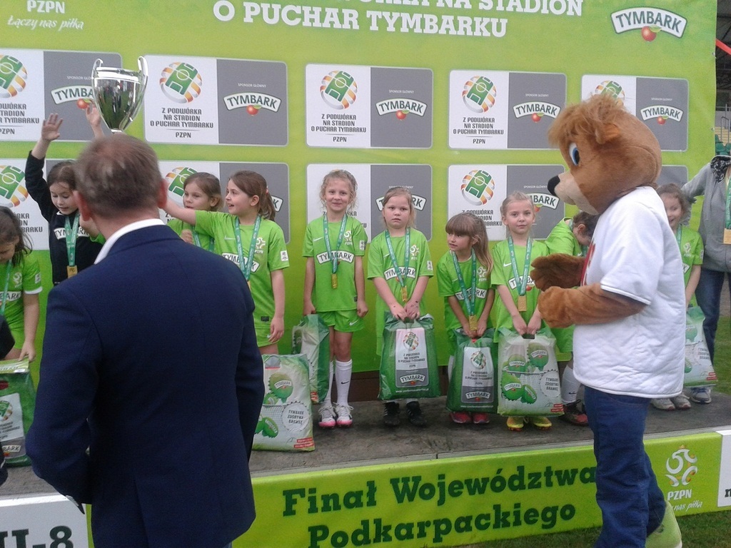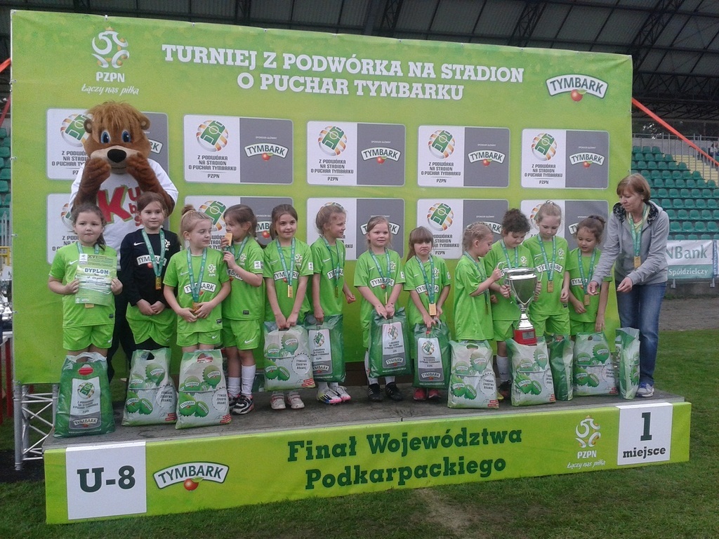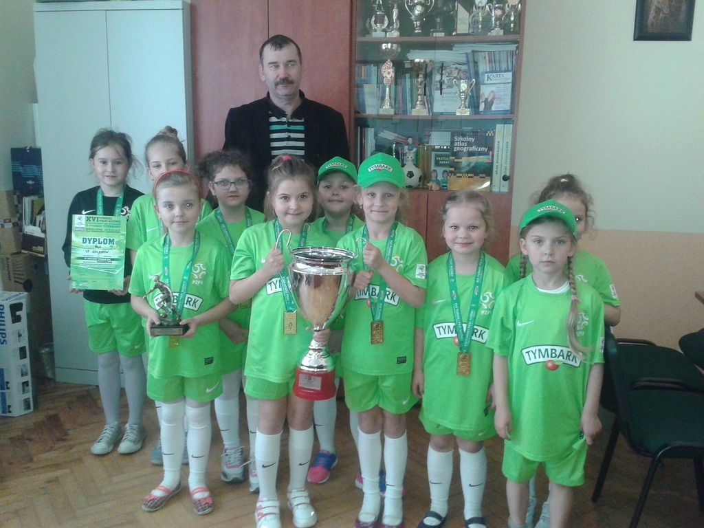 Już niedługo Mistrzostwa Europy w piłce nożnej. Cała Polska czeka z nadzieja na dobry wynik, a my w Kalnikowie nie musimy. My mamy już mistrzowską drużynę. Mamy już złote medale i ogromny puchar. Nasze złotka : Wiktoria Buksa, Alicja Ferków, Anna Ferlejko, Kamila Fil, Emilia Kiwer, Oliwia Kondrów, Natalia Kowalska, Anna Noga , Oliwia Pasieka, Klaudia Segiń, Natalia Sitko i Martyna Sumka wraz z trenerką p. Marią Dacyk " zdobyły" Stalową Wolę. Gratulujemy także Alicji Ferków zdobycia tytułu króla strzelców turnieju ( 5 bramek w 3 meczach ). I miejsce w finale U- 8 Województwa Podkarpackiego Turnieju " Z podwórka na stadion o puchar Tymbarku", którego organizatorem jest Polski Związek Piłki Nożnej to spełnienie marzeń młodych piłkarek, ich rodziców ( dziękujemy za doping w Stalowej Woli) i Pani trenerki. Cała szkoła dumna jest z naszych bohaterek. Gratulujemy i dziękujemy. Ciekawe czy można dostać od dziewczynek autografy? Sprawdzimy jutro w szkole.