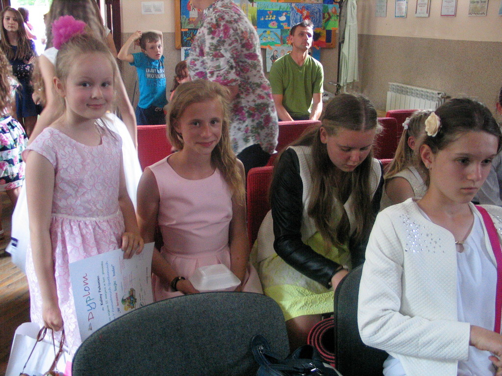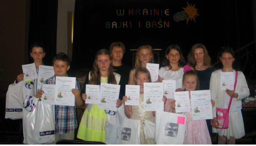 W piątek, 10 czerwca uczniowie naszej szkoły uczestniczyli w powiatowym konkursie ,,W krainie bajki i baśni", który odbył się w Gminnym Ośrodku Kultury w Krasiczynie. Konkurs przebiegał w trzech kategoriach: piosenki, teatru jednego aktora i pracy plastycznej. Kalina Pekaniec, Magdalena Polny, Alicja Kalawska, Joanna Soroka i Amelia Grabas-Kalawska wystąpiły w kategorii wokalnej, Kamila Polna, Oliwia Polna i Łukasz Łogin - w kategorii teatru. Dagmara Chanik, Klaudia Janczyszyn i Dominika Ścirko wzięły udział w konkursie plastycznym. Kalina Pekaniec ,,Piosenką drewnianych lalek" wyśpiewała II miejsce w grupie wiekowej klas 1-3. Alicja Kalawska za wykonanie piosenki ,,Kolorowy wiatr" otrzymała również II miejsce w kategorii klas 4-6, a Amelia Grabas-Kalawska - wyróżnienie za piosenkę ,,Mam tę moc" w kategorii gimnazjum. W konkursie aktorskim Oliwia Polna i Łukasz Łogin zdobyli wyróżnienia. Gratulumy wszystkim uczestnikom konkursu.