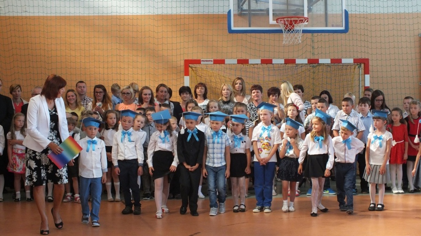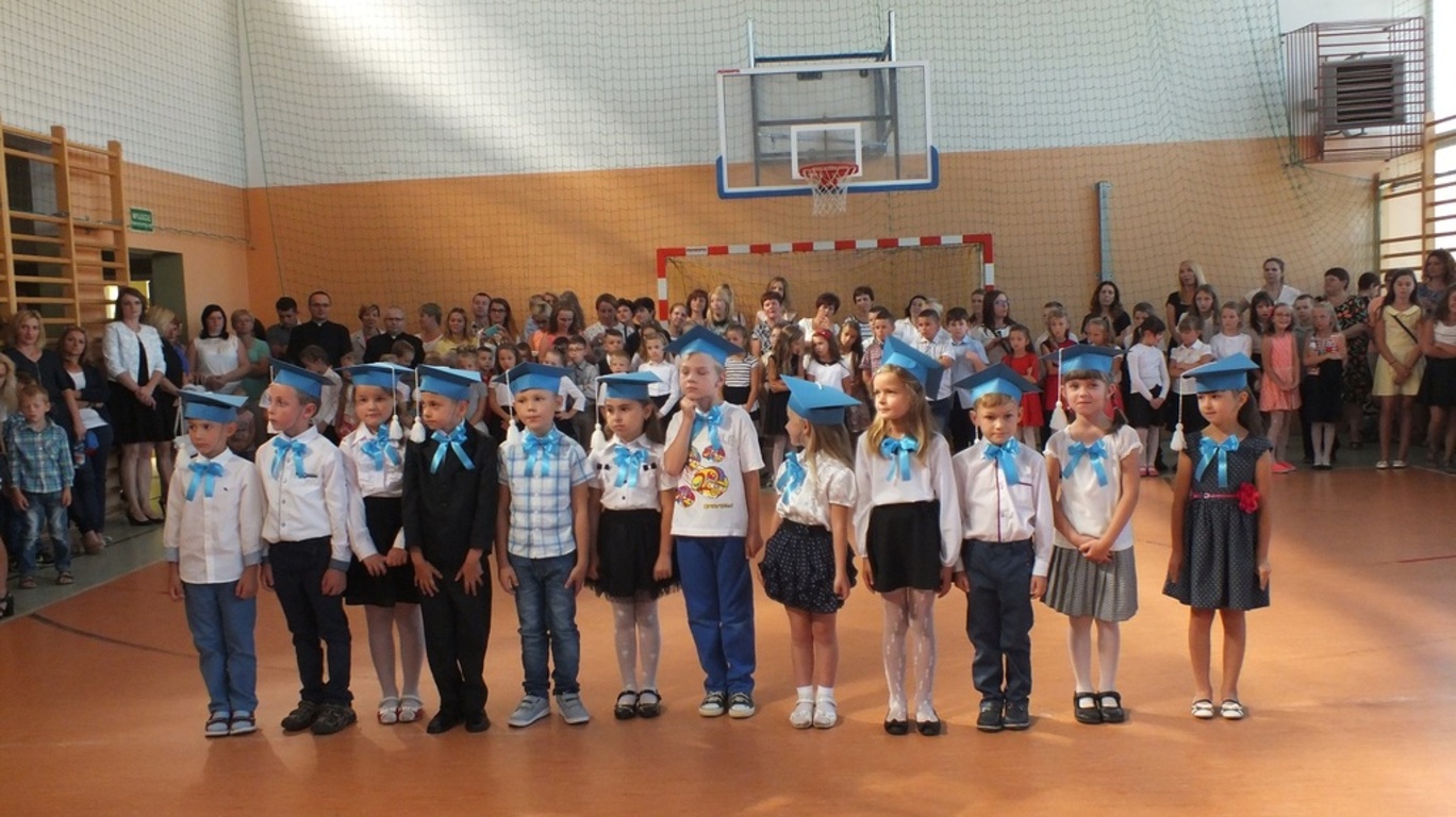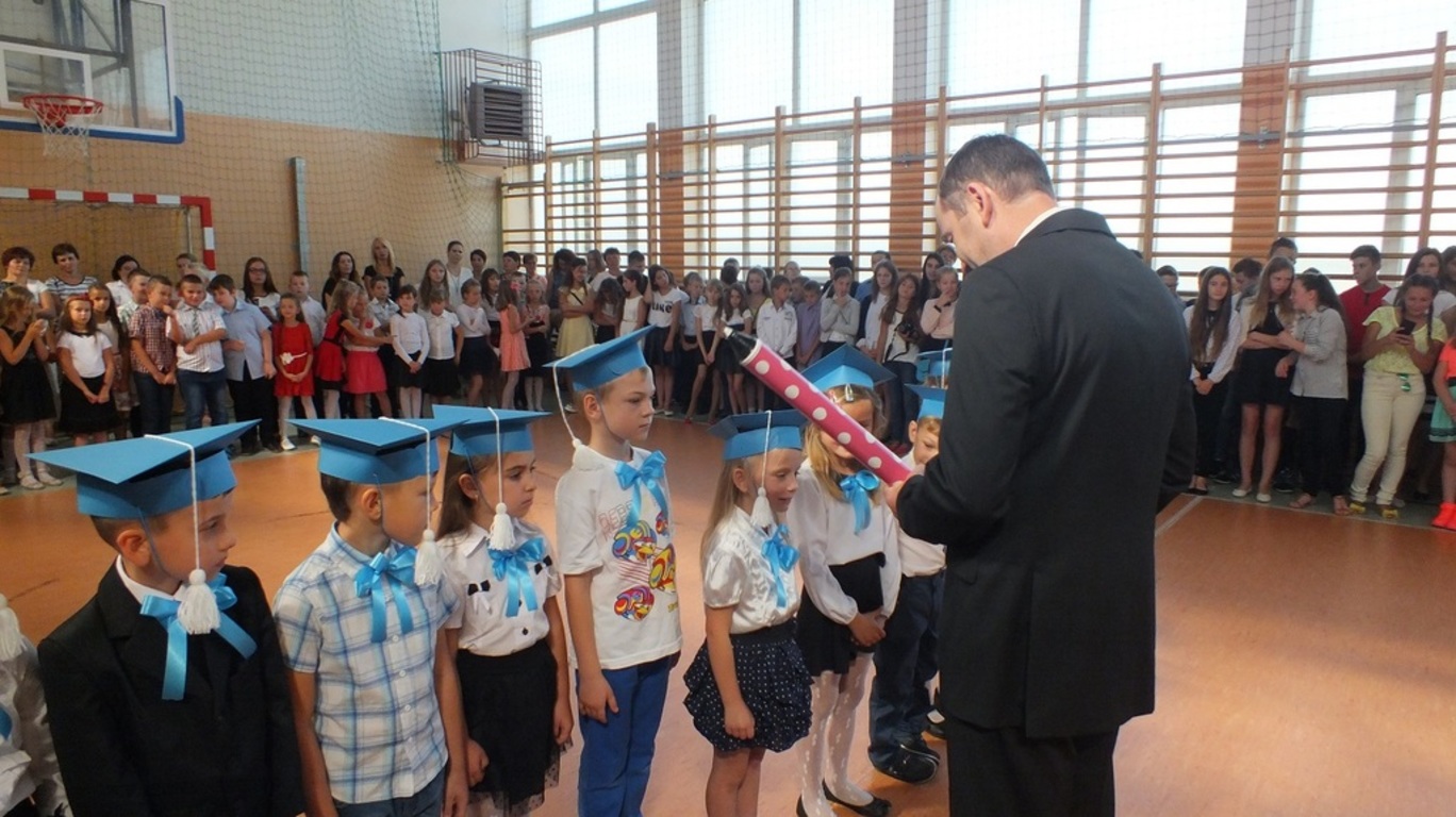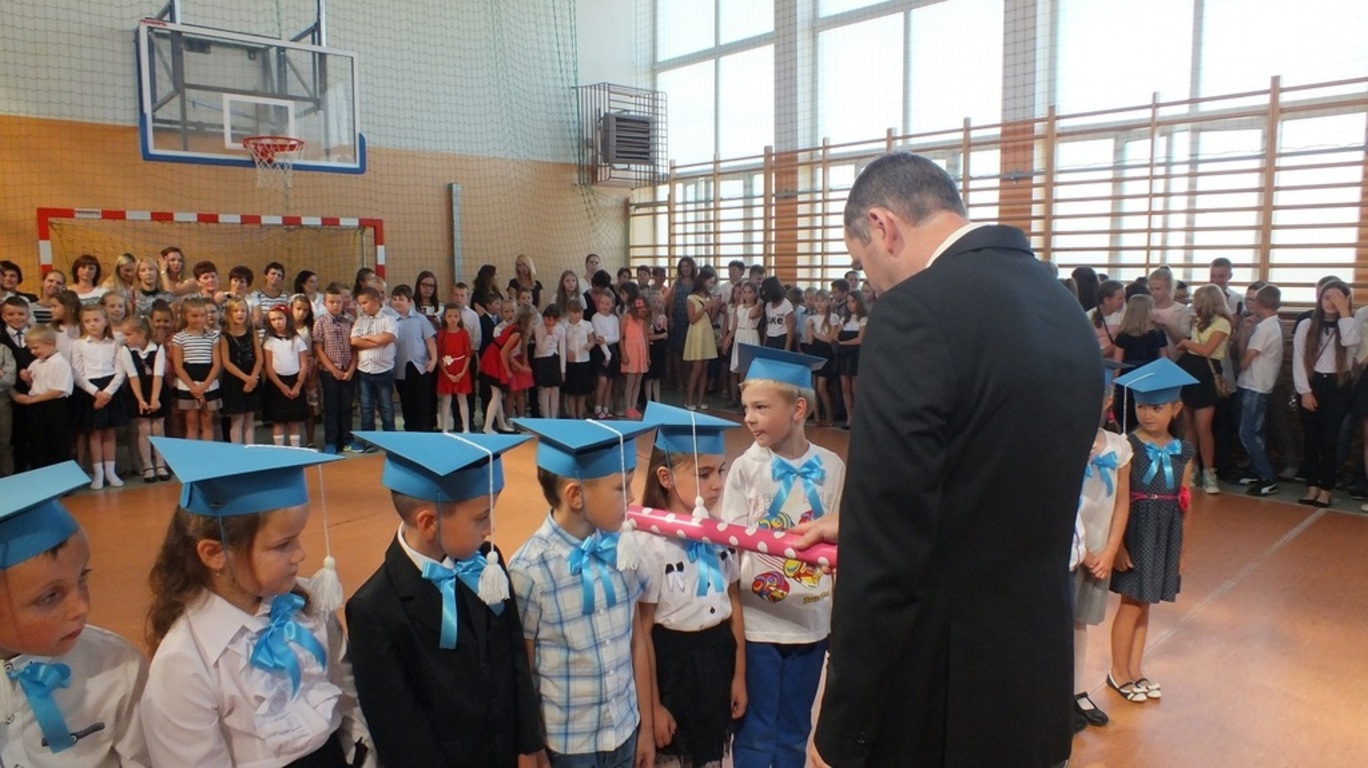 Z góry po raz pierwszy "patrzyła" na nas kamera ze szkolnego systemu monitoringu. Nagrywała uśmiechnietych ludzi, którzy z radością wrócili po wakacjach do szkoły. Głównymi bohaterami uroczystości byli pierwszoklasiści. Pięknie przystrojeni przez wychowawczynię p. Barbarę Stopę złożyli ślubowanie i zostali pasowani na uczniów naszej szkoły.