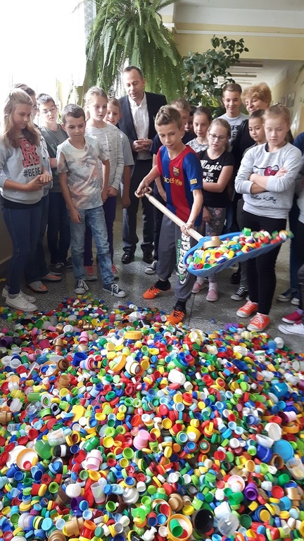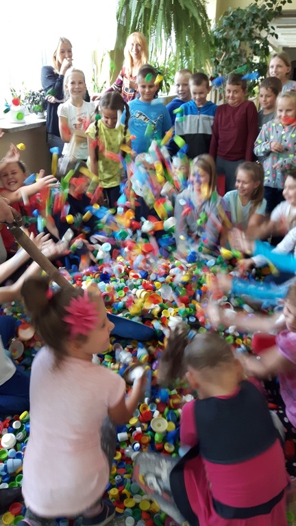 Plastikowe nakrętki utworzyły dzisiaj na szkolnym korytarzu niepowtarzalną, kolorową piramidę. Zdaliśmy sobie sprawę jak dużo udało sie ich nazbierać! To wyjatkowy dzień, bo poprzez fundację " Zdążyć z pomocą " pomogą one w leczeniu i rehabilitacji ciężko chorej Laury Parafiniuk, blisko trzyletniej dziewczynki z Podkarpacia. Dziękujemy wszystkim uczniom, nauczycielom i pracownikim szkoły za mozolną , codzienną zbiórkę. To miła chwila, gdy mogliśmy je przekazać. Zbieramy dalej! Wszelkiego rodzju plastikowe nakrętki można przynosić indywidualnie i zbiorowo i wsypywać do worka w klasie II gimnazjum. Czekamy.