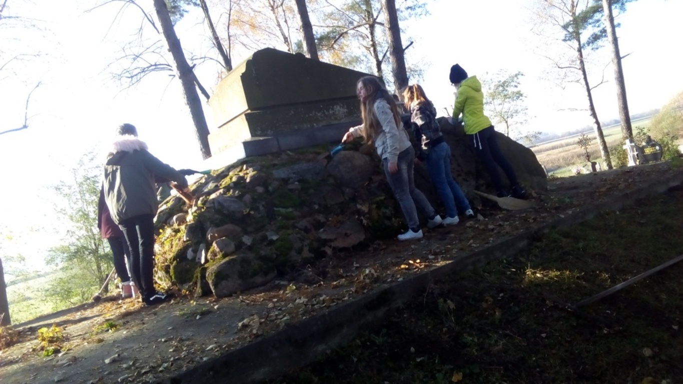 W piątek 28 października ( przy pięknej pogodzie ) młodzież gimnazjalna pod opieką p. Bogusława Kosztyły porządkowała groby na cmentarzach w Kalnikowie. Najpierw uporządkowano rodzinny grobowiec pana Bolesława Orzechowicza ( patrona szkoły), a następnie cmentarz wojskowy z okresu I wojny swiatowej. Cieszymy się, że uczniowie rozumieją , iż opieka nad grobami, to ich obowiązek. Szczególne podziękowania należą sie klasie I gim., która najliczniej stawiła się do pracy... W tych dniach zadumy, będąc na cmentarzu w Kalnikowie nie zapomnijmy o " naszym" księdzu Kazimierzu Florku.