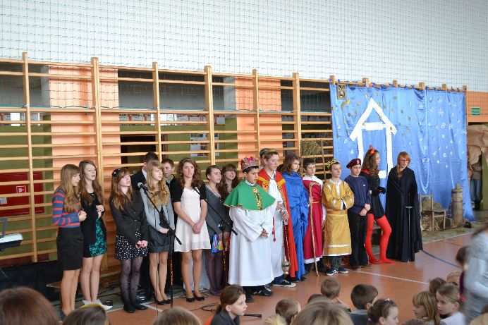 Widzowie mogli usłyszeć piękne kolędy w wykonaniu gimnazjalistek. Ponadto swój debiut mieli aktorzy z zerówki, którzy w bardzo oryginalnych strojach przedstawili tradycyjnie historię Bożego Narodzenia. W bardziej współczesnym stylu to samo wydarzenie wystawili najmłodsi gimnazjaliści. Oczywiście nie mogło obejść się bez kolędowania po ukraińsku.