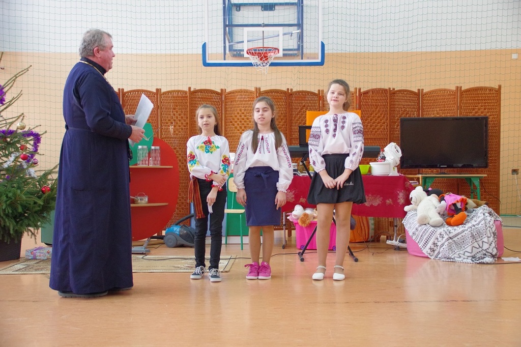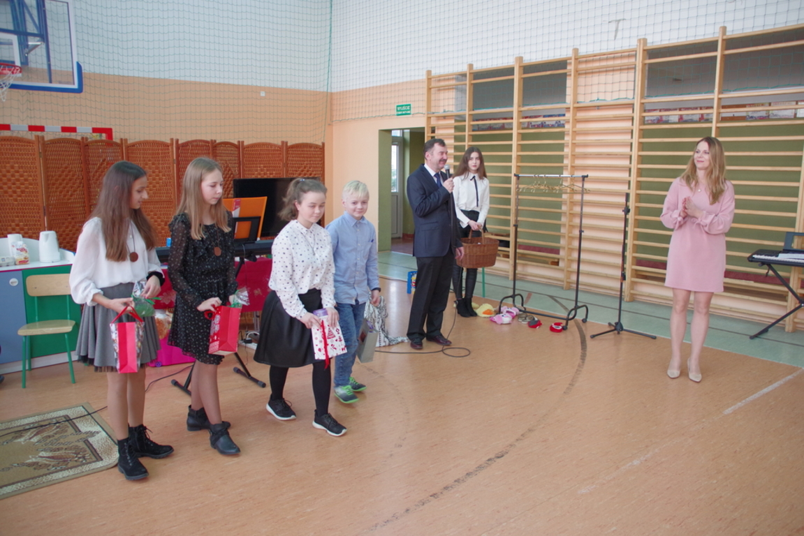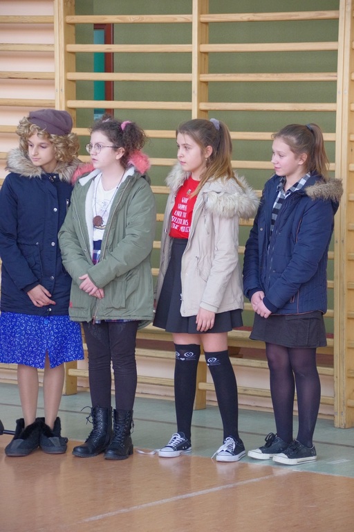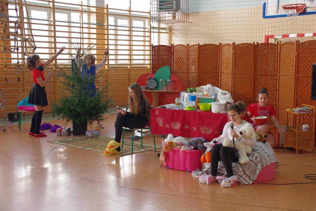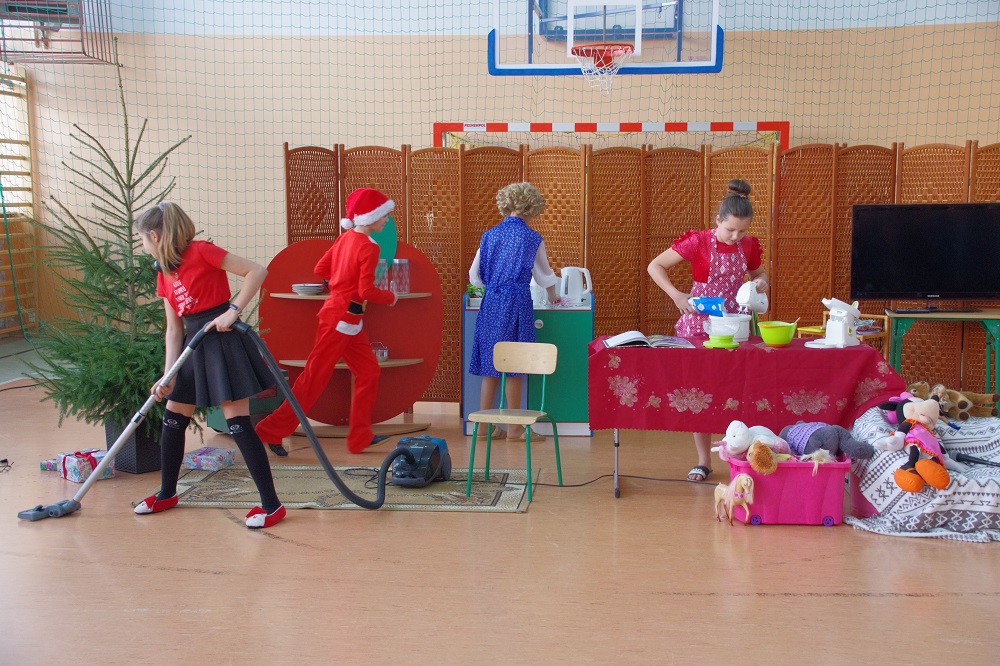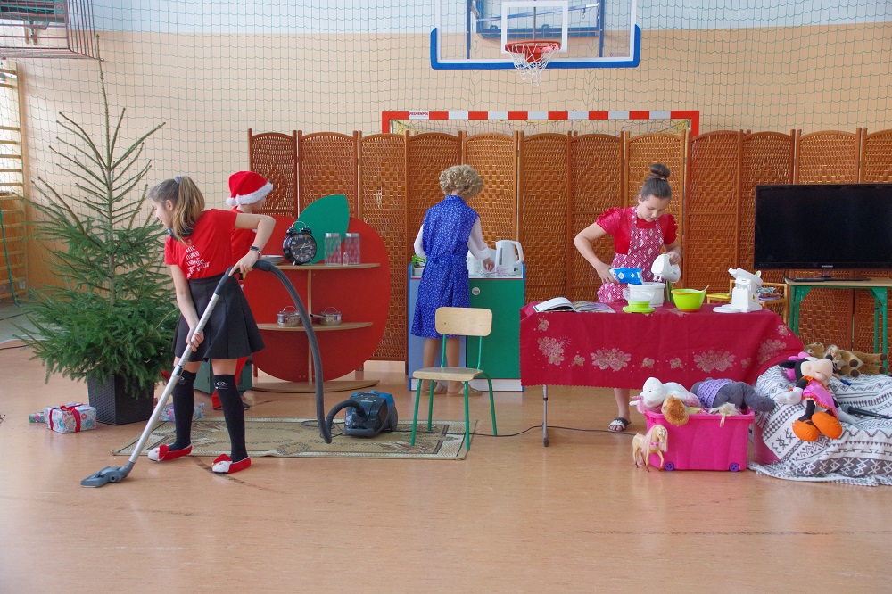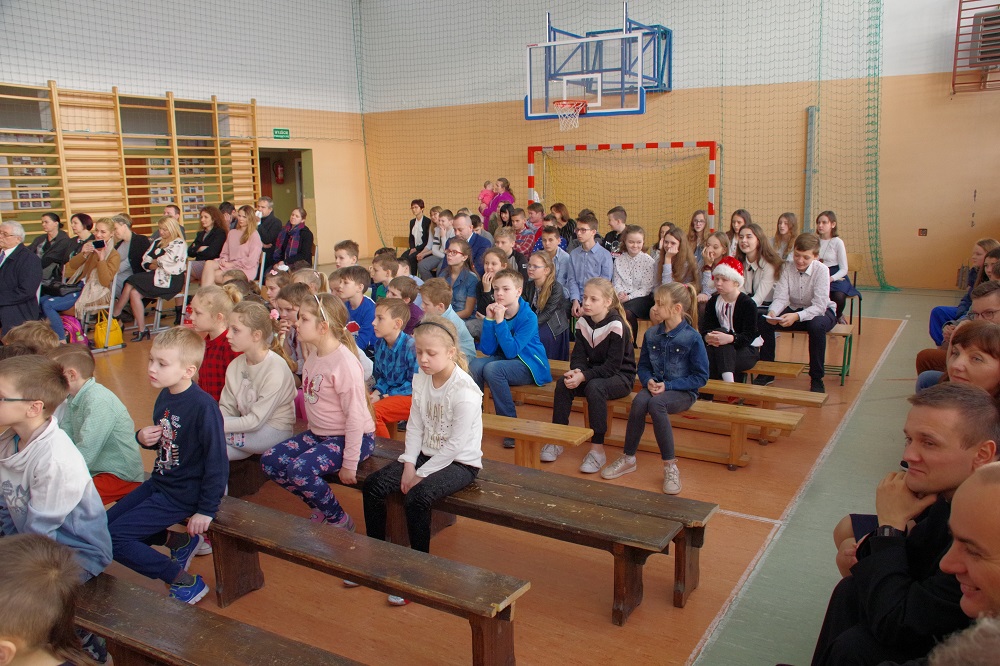 Pełne torby zakupów, hałas odkurzacza, miksera w kuchni i wszechobecne telefony komórkowe. Nikt nie ma czasu dla małej dziewczynki! Tak w krzywym zwierciadle dzień wigilii ukazała kl. 6 gr. 1. Ta komedia rozbawiła publiczność, ale zmusiła także do głębokich przemyśleń. W główne role znakomicie wcielili się : Kamila Fill, Klaudia Segin, Oliwia Pasieka, Natalia Kowalska, Emila Stefanowicz i Mikołaj Kowalów. Następnie zgromadzeni 20 grudnia 2019 r. z przyjemnością obejrzeli taneczno - wokalne " popisy" Kaliny Pekaniec, Wiktorii Buksy i Alicji Ferków, a także absolwentki Alicji Kalawskiej. Kolędowali także uczniowie chodzący na język ukraiński, religię prawosławna i religię greckokatolicką ( tu debiut na flecie zaliczył ks. Paweł Rohuń). Debiutował także w naszej szkole wójt gminy Stubno p. Ryszard Adamski ( brawurowo wykonał kolędę kresową). Na koniec tradycyjne dzielenie się opłatkiem i prosforą rozpoczął dyrektor szkoły p. Stanisław Kalawski. Aha, konkurs na najładniej świątecznie ozdobione drzwi wygrała kl. 6 gr. 1. Wyróżniono kl. 5. Wręczono także nagrody za konkurs Szopek. Dziękujemy wszystkim zaproszonym gościom , którzy zaszczycili nasze szkolne uroczystośći. Wesołych Świąt.