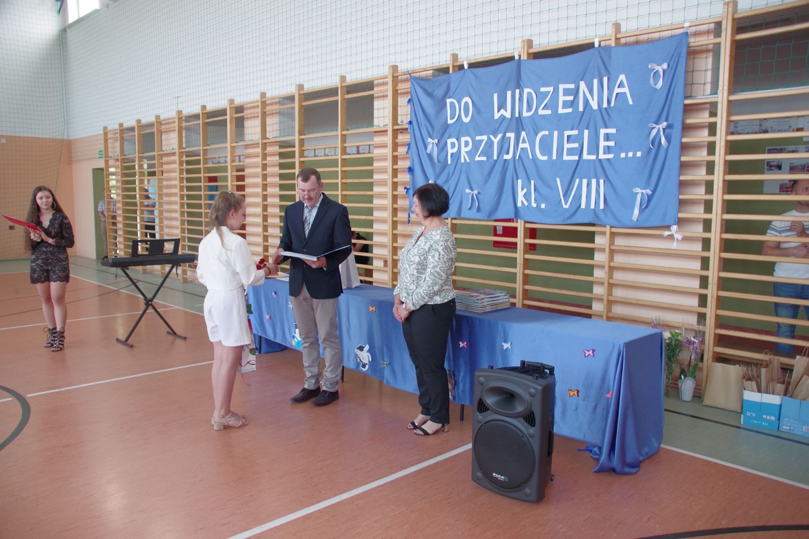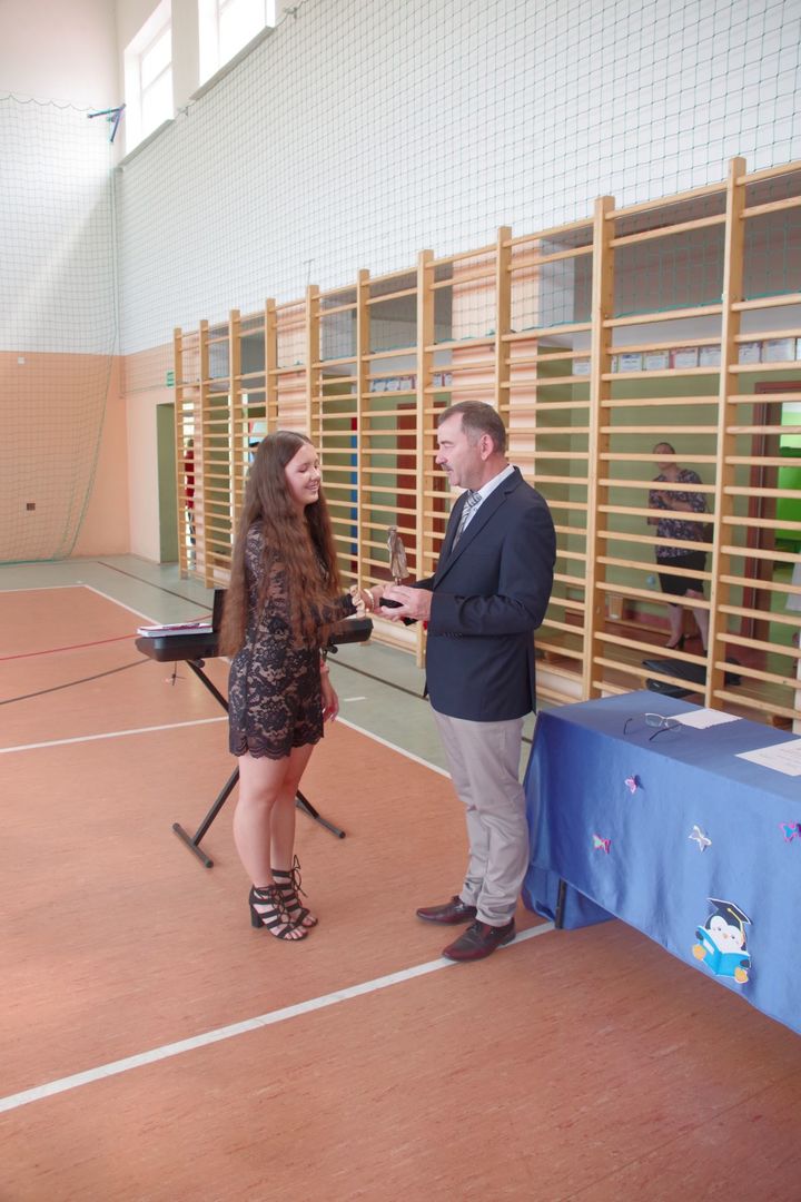 Niby taka kolej rzeczy. Najpierw przychodzi się do przedszkola, potem pierwsza klasa ( pasowanie), potem druga, trzecia i tak dalej. I nawet nie wiadomo kiedy kończy się ósmą. Łezka sama kręci się w oku ( prawda Pani Marysiu). Wszystkim tegorocznym absolwentom ( Klaudia Segiń ze statuetką) życzymy wielu sukcesów i spełnienia marzeń