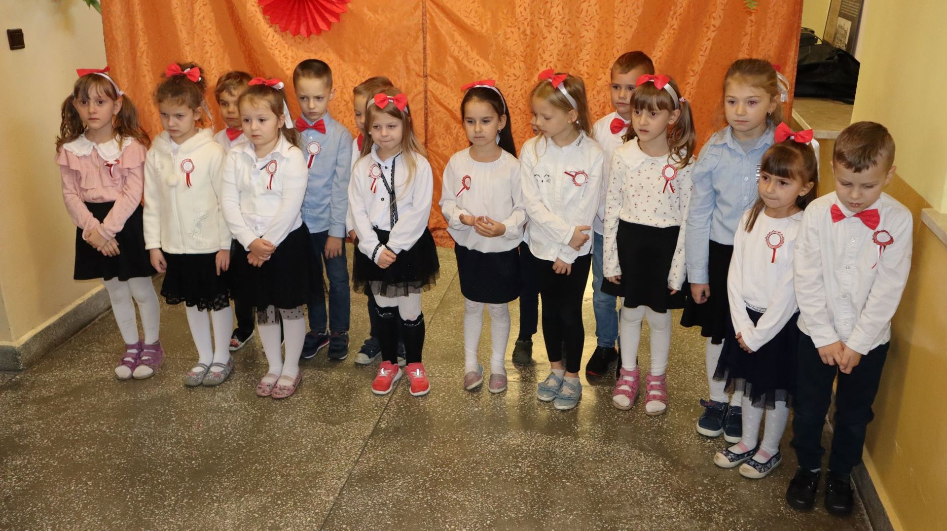 Kiedy patrzysz na odświętnie ubranych Przedszkolaków , którzy pięknie recytują " Kto Ty jesteś, Polak mały..." W. Bełzy to wiesz, że Polska ma świetlaną przyszłość. O 11.11 śpiewaliśmy hymn - w ten sposób obchodziliśmy Dzień Niepodległości. Śpiewali także ( i to bardzo ładnie ) siódmoklasiści. Apel przygotowali p. Joanna Wach, p. Maria Świszcz i p. Krzysztof Fier - dziękujemy.