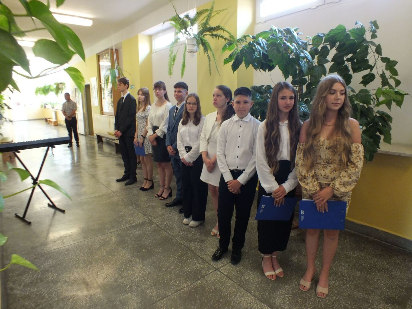 Zakończenie roku szkolnego to czas podsumowań , podziękowań i pożegnań . Były więc świadectwa z wyróżnieniem , nagrody i łzy wzruszenia ( przy pożegnaniu klasy VIII). Najlepszą tegoroczną absolwentką została Maja Chamik ( do niej trafiła pamiątkowa statuetka). Maja w podziękowaniu za trud nauki i wychowania podarowała szkole własnoręcznie zrobiony obraz . W tym miejscu należy wspomnieć o tym ,że Maja nigdy „nie zakopywała” swojego talentu. Wygrała dziesiątki konkursów o zasięgu powiatowym, wojewódzkim, krajowym i międzynarodowym rozsławiając naszą szkołę przez wiele lat. Wszystkim absolwentom życzenia dalszych sukcesów złożyli p. dyrektor Stanisław Kalawski, wójt gminy Stubno p. Ryszard Adamski , wychowawca p. Krzysztof Fier i cała społeczność szkoły. Drodzy uczniowie pamiętajcie na wakacjach o bezpieczeństwie ( swoim i swoich koleżanek i kolegów). Grajcie w klasy, w gumę , dwa ognie, szczura, Baba Jaga patrzy, chowanego, łapanego, ćwiczcie sztuczki. Nie zapomnijcie o dobrej książce, dobrym filmie i oczywiście o szachach.