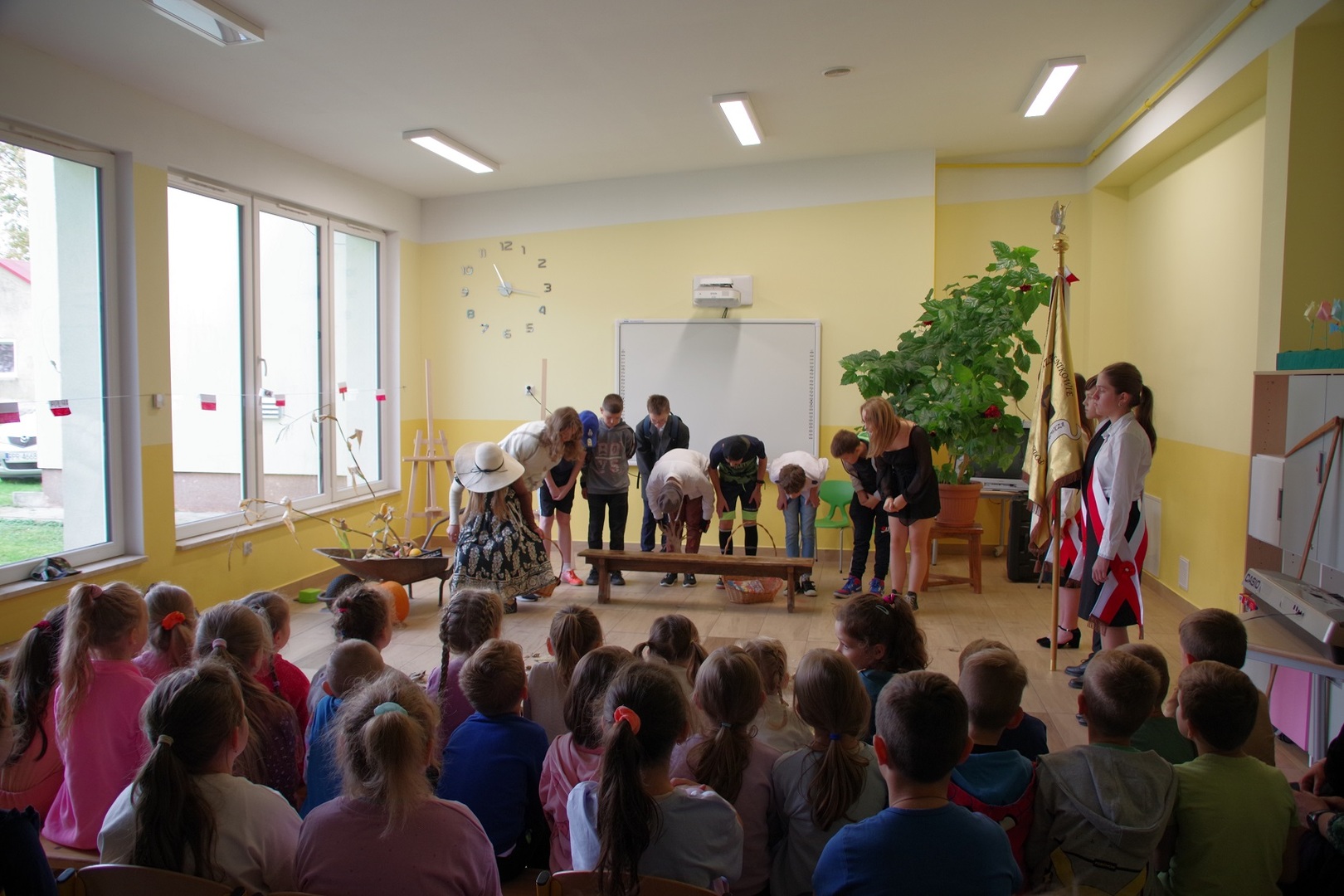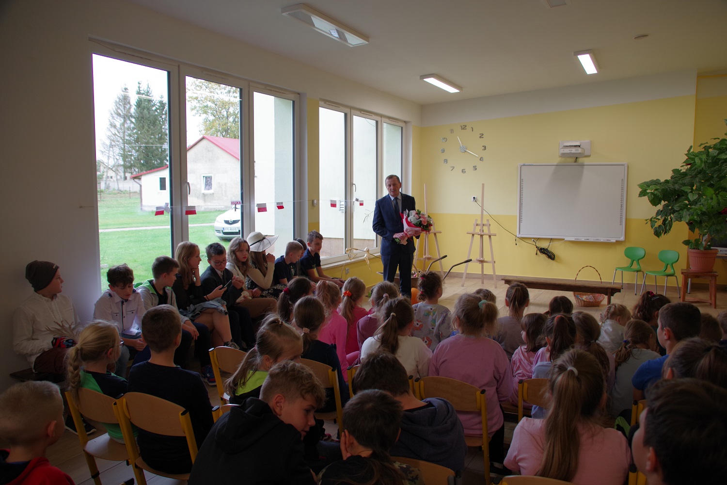 Z okazji 250 rocznicy powstania Komisji Edukacji Narodowej w naszej szkole wykonano wyjątkowe zdjęcie. Widzimy na nim całą społeczność szkoły- dyrektora, nauczycieli , pracowników szkoły , uczniów . Jest też nasz specjalny gość p. Ryszard Adamski- wójt gminy Stubno. Ku potomnym trzeba napisać ,że zdjęcie wykonał nauczyciel p. Krzysztof Fier ( dlatego nie ma Go na nim). Wcześniej w przedstawieniu o Jesieni wystąpili uczniowie z kl. VI i co ciekawe ( wszak potocznie ,dzień ten ,zwany jest Dniem Nauczyciela) wystąpił nauczyciel - p. Bogusław Kosztyła