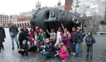 Drugim punktem wycieczki był Park Wodny w Krakowie, gdzie uczniowie spędzili dwie godziny na zabawie w wodzie (pluskając się, próbując pływać, siedząc w jacuzzi). Później było to, co według niektórych najważniejsze, czyli zwiedzanie krakowskiego Rynku. Nauczyciele wyznaczyli 1 godzinę i 15 minut wolnego (Hurra! Hurra!). Młodzież mogła zobaczyć to co ich najbardziej ciekawiło. Zwiedzali Sukiennice, byli w „Hard Rocku”, trafili na koncert jazzowy, bratali się z przygodnie napotkanymi ludźmi (zapytajcie Annę Rz.), robili mnóstwo zdjęć, posilali się pizzą, szukali sklepów muzycznych i w ogóle szukali szczęścia, acha i zakupy! Po tym czasie zebrali się pod pomnikiem Adama Mickiewicza (czy wiecie kto to?) skąd wyruszyli w drogę do autobusu (nikt się nie zgubił J )