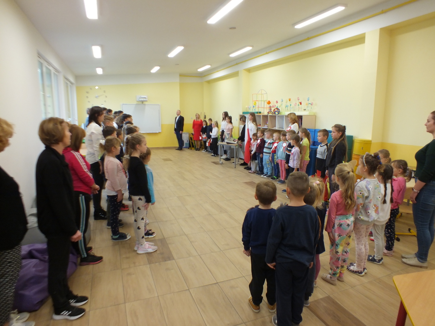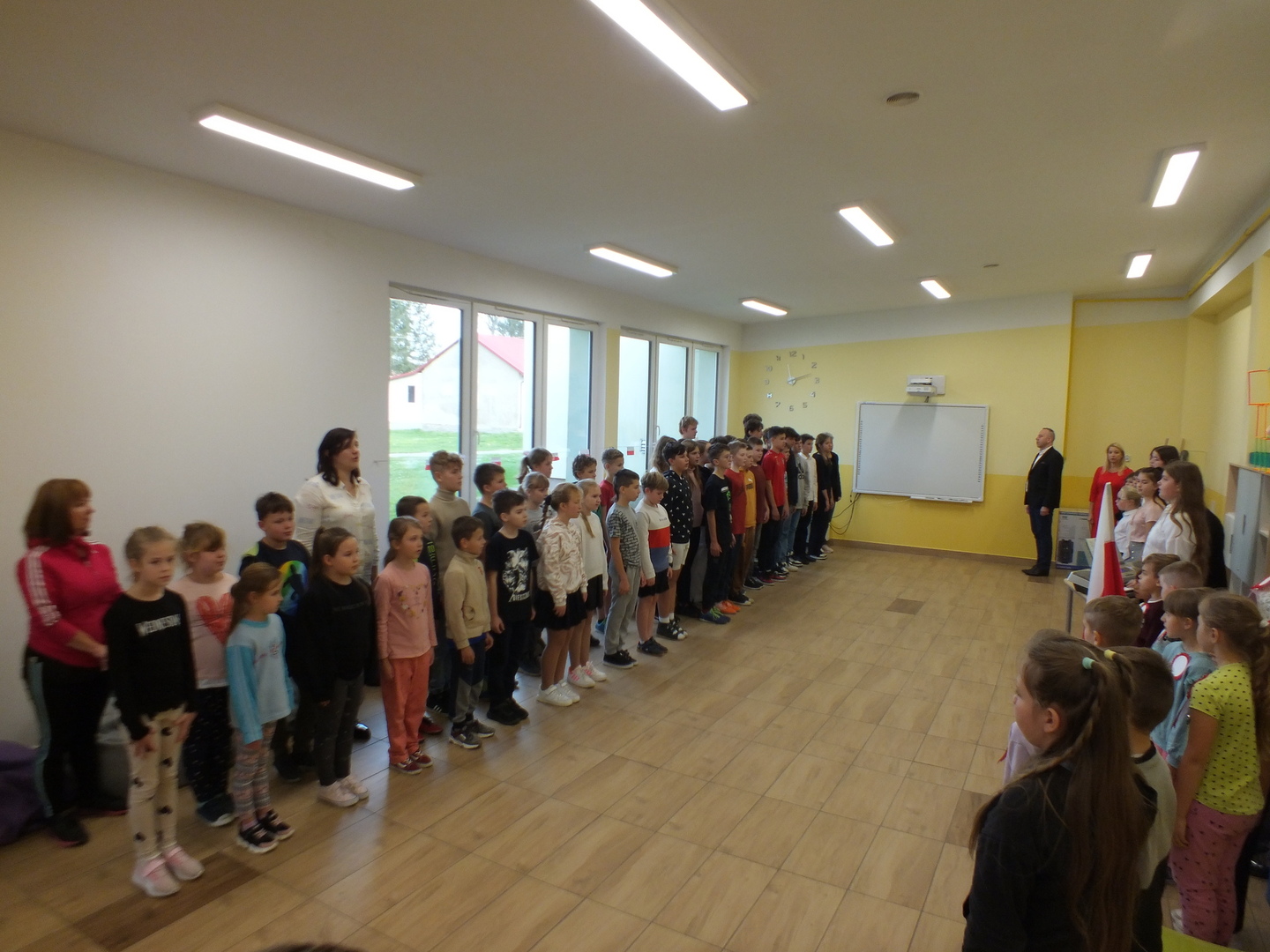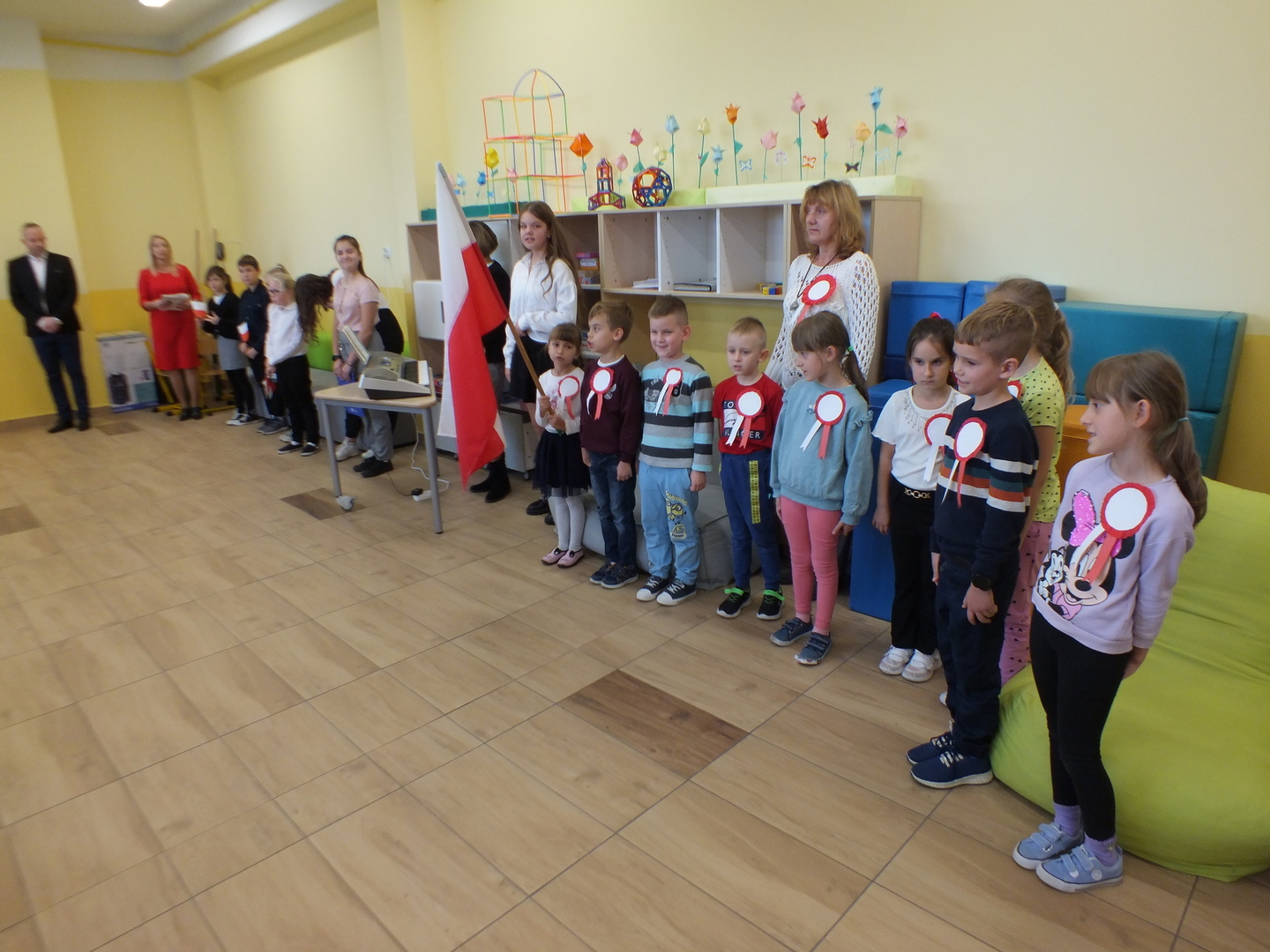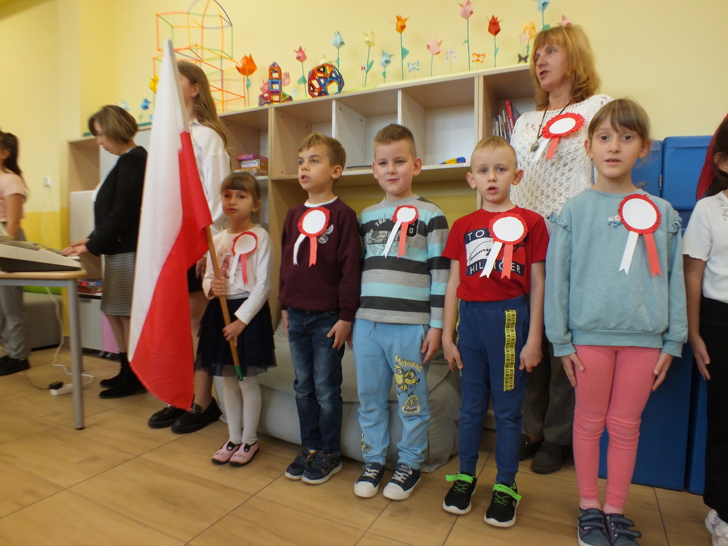Piątek. Godzina 11. 11. Postawa na baczość. Flagi, herb, kotyliony, patrioyczne wiersze, pieśni to wszystko podczas szkolnych obchodów Dnia Niepodległości.