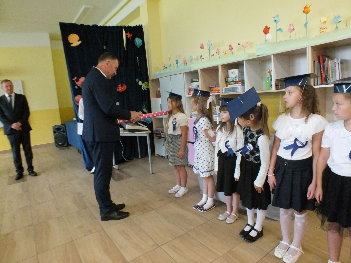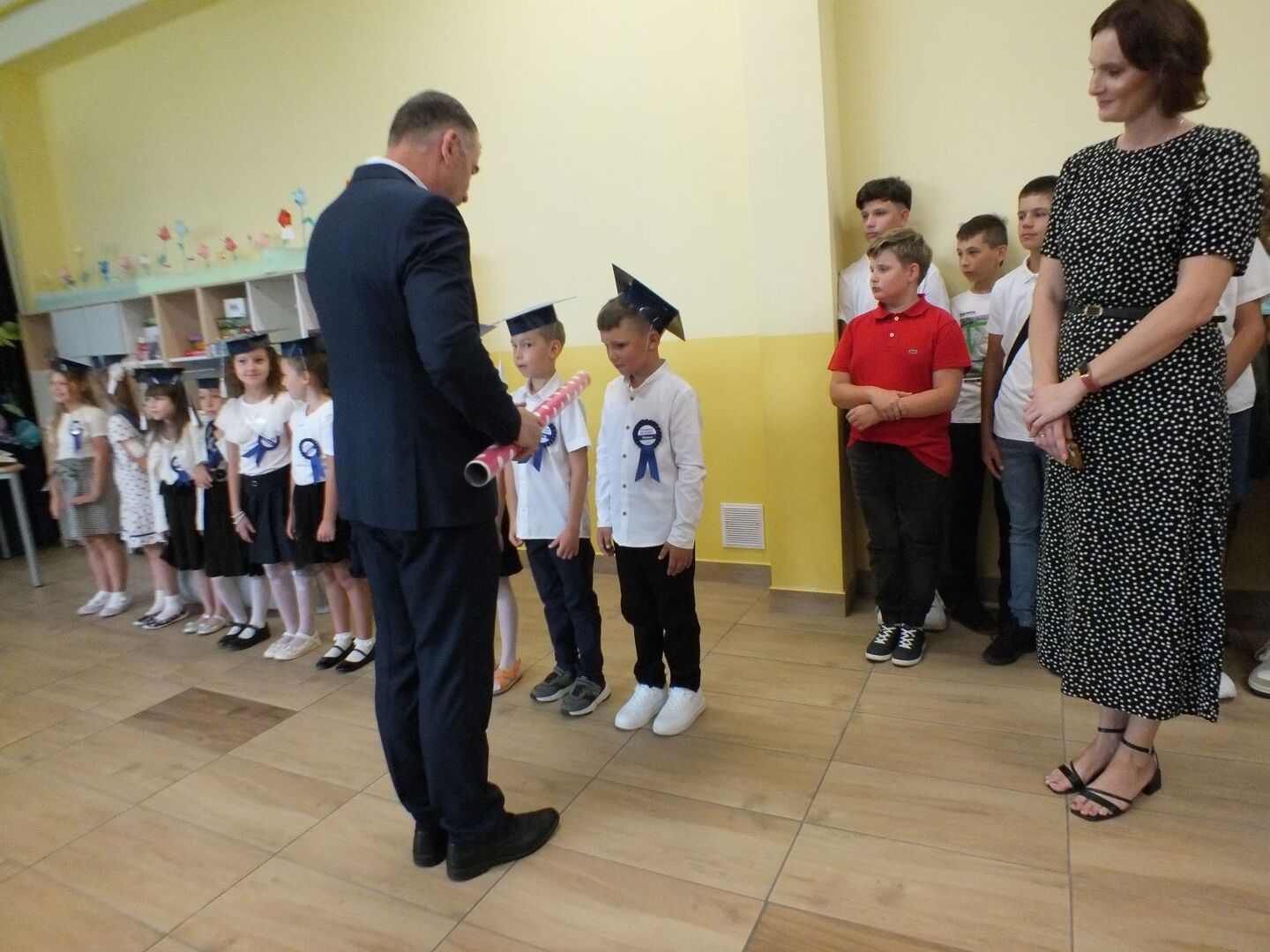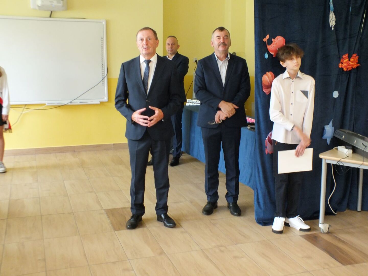 Na ścianie ,tuż za Pocztem Sztandarowym, widnieje duży zegar ( spójrzcie na główne zdjęcie). Jego montaż to fachowa, precyzyjna " robota" p. Wiktora Balandyka - zresztą wiadoma rzecz ( pan Witek od dawna na lekcjach języka polskiego prezentowany jest jako szkolny Herkules). No i ten zegar zaczął odmierzać czas w roku szkolnym 2024/2025. W pierwszych minutach nowego, szkolnego, roku był świadkiem wspólnego spotkania całej szkolnej społeczności , wysłuchał przemówienia wójta gminy Stubno p. Ryszarda Adamskiego i był śwadkiem pasowania pierwszoklasistów. Cyk, cyk, cyk , cyk, cyk...