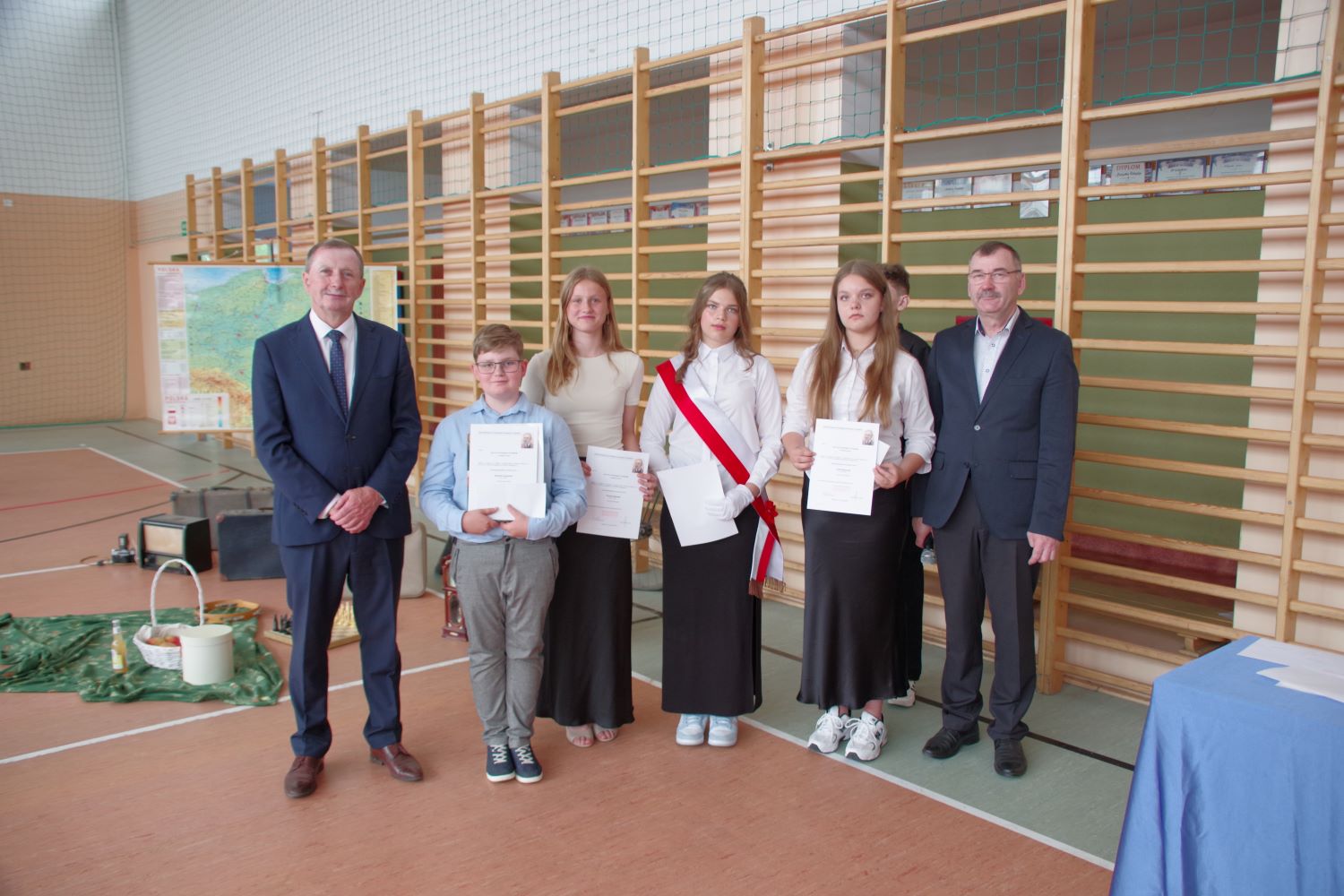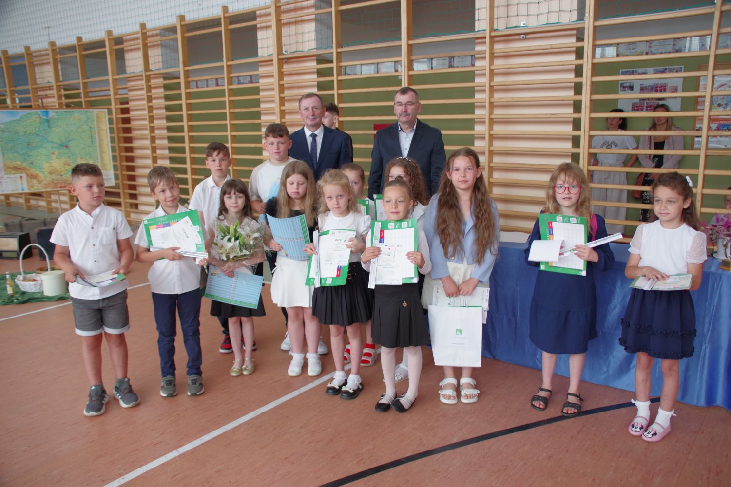 W obecności wójta gmniny Stubno p. Ryszarda Adamskiego, dyrektor szkoły p. Stanisław Kalawski wręczył uczniom świadectwa z wyrożnieniem oraz inne nagrody za szczególne osiągnięcia i konkursy. Zgromadzeni na sali gimnastycznej mogli też podziwiać piękny wystep Przedszkolaków (pod opieką p. Joanny Wach). Warta podkreślenia jest współpraca naszej szkoły z Towarzystwem Przyjaciół Dzieci w Przemyślu (podziękowania dla p. Beaty Kasprzyk). Towarzystwo to m.in. dofinansowało letnie kolonie dla dwóch naszych uczennic. Miłym akcentem tegorocznej uroczystości była wizyta strażaków z OSP Kalników z prezesem p. Grzegorzem Radio na czele (dziękujemy za miłe słowa i podarunki). Rada Pedagogiczna i pracownicy szkoły przekazali strażakom 820 zł na zbiórkę w celu zakupu dla nich defibrylatora AED. Ponadto strażacy dla całej społeczności szkolnej serwowali watę cukrową, popcorn i napoje. Całość dochodu przeznaczona zostanie na ww. defibrylator. Serdecznie dziękujemy . Najlepszą tegoroczną absolwentką została Sandra Danyliszyn (gratulujemy), wraz z nią żegnamy pozostałych ósmoklasistów (Klaudiusza Dejnakę, Paulinę Fijor, Fabiana Forysia, Józefa Guta, Ksawerego Kaczmarka, Kamila Kasprzyka, Gabriela Niedzielę, Mikołaja Pekańca i Szymona Skibę). Życzymy Wam wszelkiej pomyślności, sukcesów w dalszej edukacji i spełnienia marzeń. To był kolejny dobry rok pracy naszej szkoły. O wielu incjatywach, sukcesach, wzlotach czy codziennym życiu można przeczytać na szkolnym profilu fb (ten profil to zasługa p. Dariusza Laska - pedagoga). Dziękujemy za to i serdecznie polecamy (i profil, i pana Darka). Uczniowie w tym roku wiele podróżowali, m.in. do Zamościa, Zatoru (Energylandia), Przemyśla, czy na przejście graniczne w Korczowej. W szkole też było ciekawie np. dzięki nawiązaniu współpracy z Instytutem Archeologii Uniwersytetu Rzeszowskiego (cykl wykładów i warsztatów). Uczennica Paulina Fijor i jej opiekun p. Krzysztof Fier odnieśli spektakularny sukces w konkursie Zakładu Ubezpieczeń Społecznych (mistrzostwo Polski w kategorii komiks). Dziękujemy wszystkim i do zobaczenia we wrześniu.