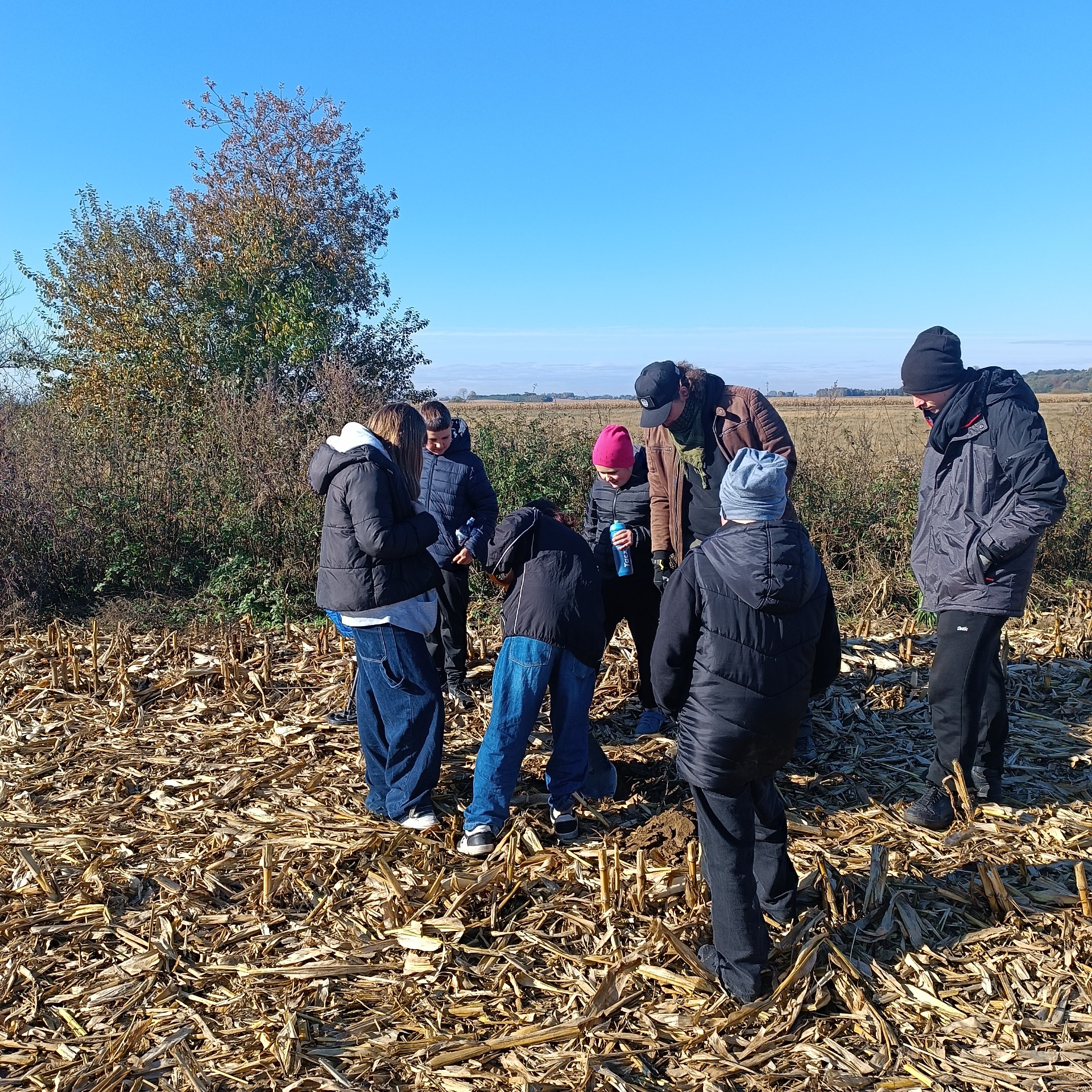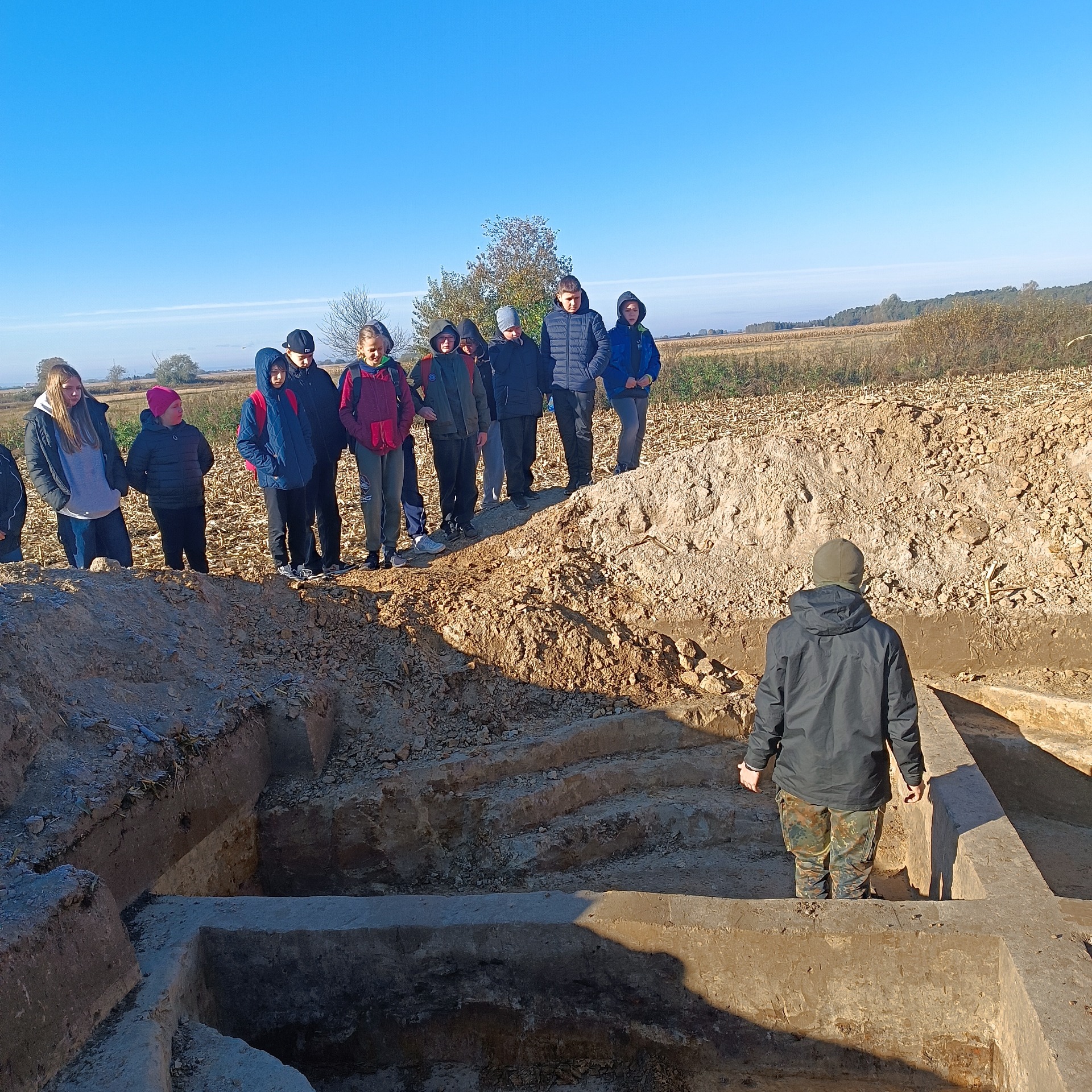 W drugiej połowie października uczniowie klasy V -VIII , pod opieką p.Bogusława Kosztyły, uczestniczyli w pracach archeologów na stanowisku 32 w Chotyńcu. Mieli okazję przyjrzeć się eksploracji obiektu mieszkalnego z wczesnej epoki żelaza oraz poznać zasady sporządzania dokumentacji terenowej. Dodatkową atrakcją była prezentacja działania wykrywaczy metalu oraz możliwość użycia tych urządzeń. To udana kontynuacja zajęć , które wcześniej odbyły się w szkole. Dziękujemy wszystkim pracownikom Instytutu Archeologii Uniwersytetu w Rzeszowie.