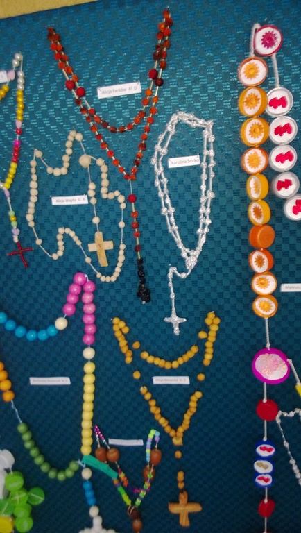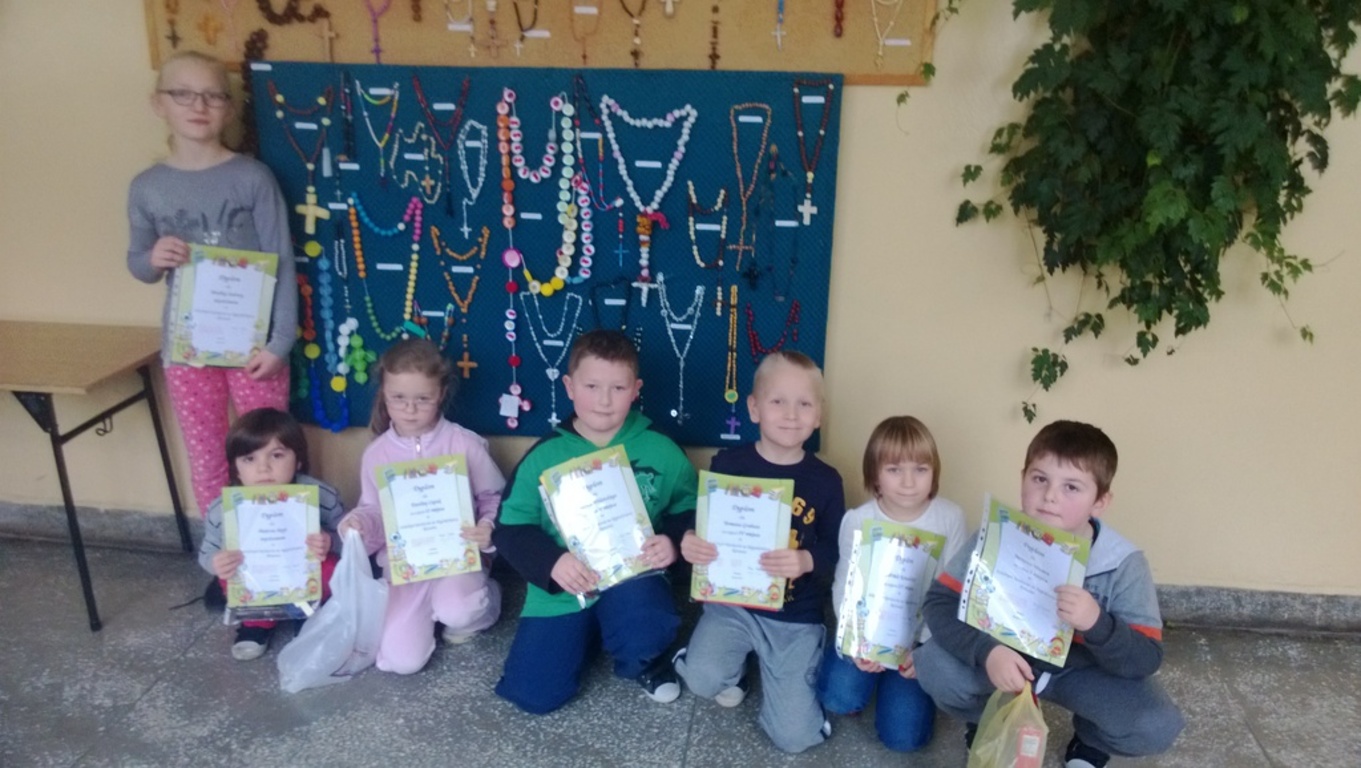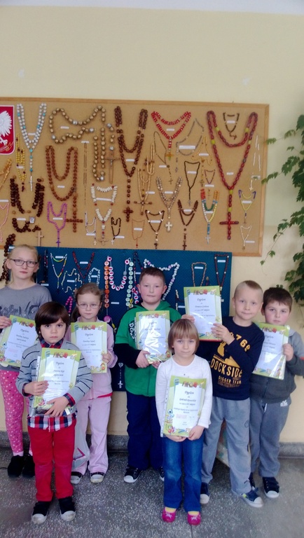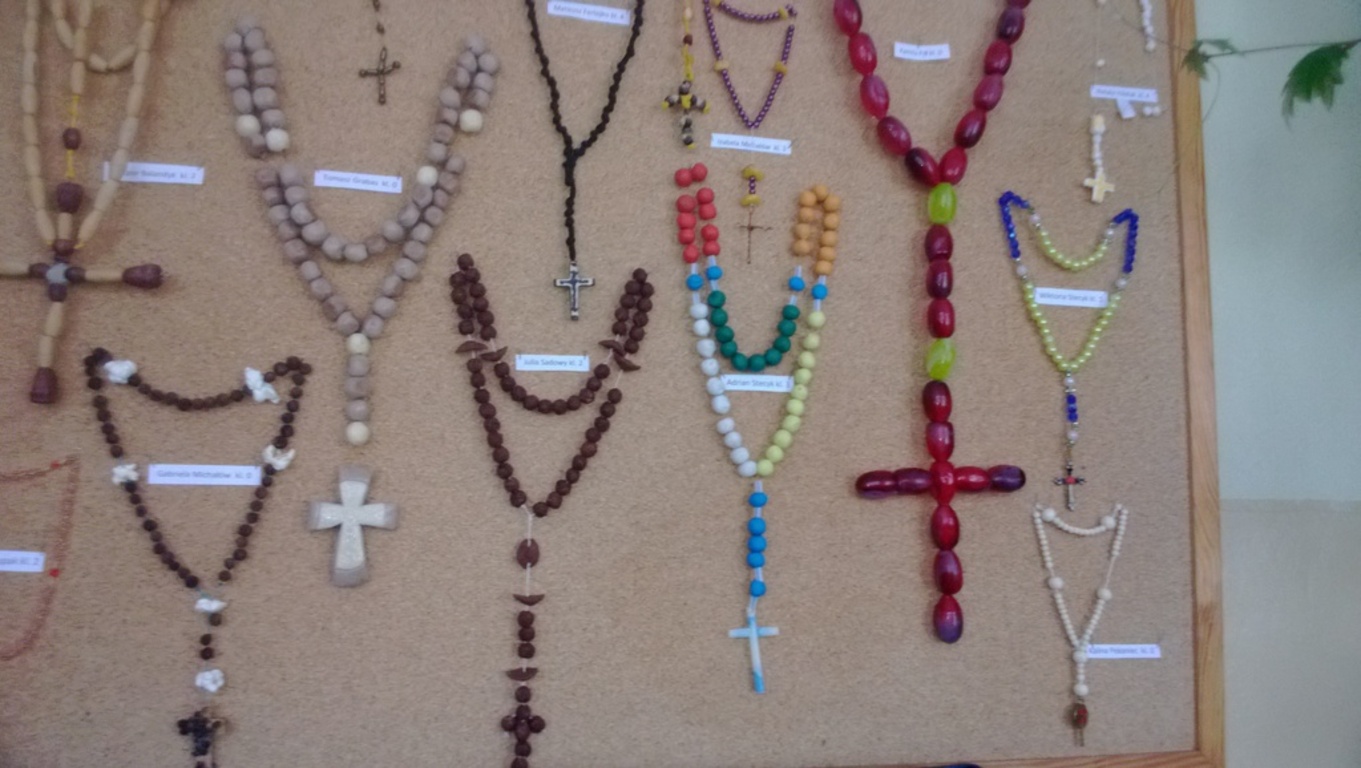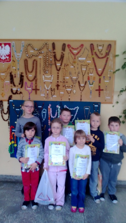 Laureaci otrzymali nagrody rzeczowe, zaś wszyscy uczestnicy konkursu drobne upominki. Różańce można oglądać na naszym szkolnym korytarzu.