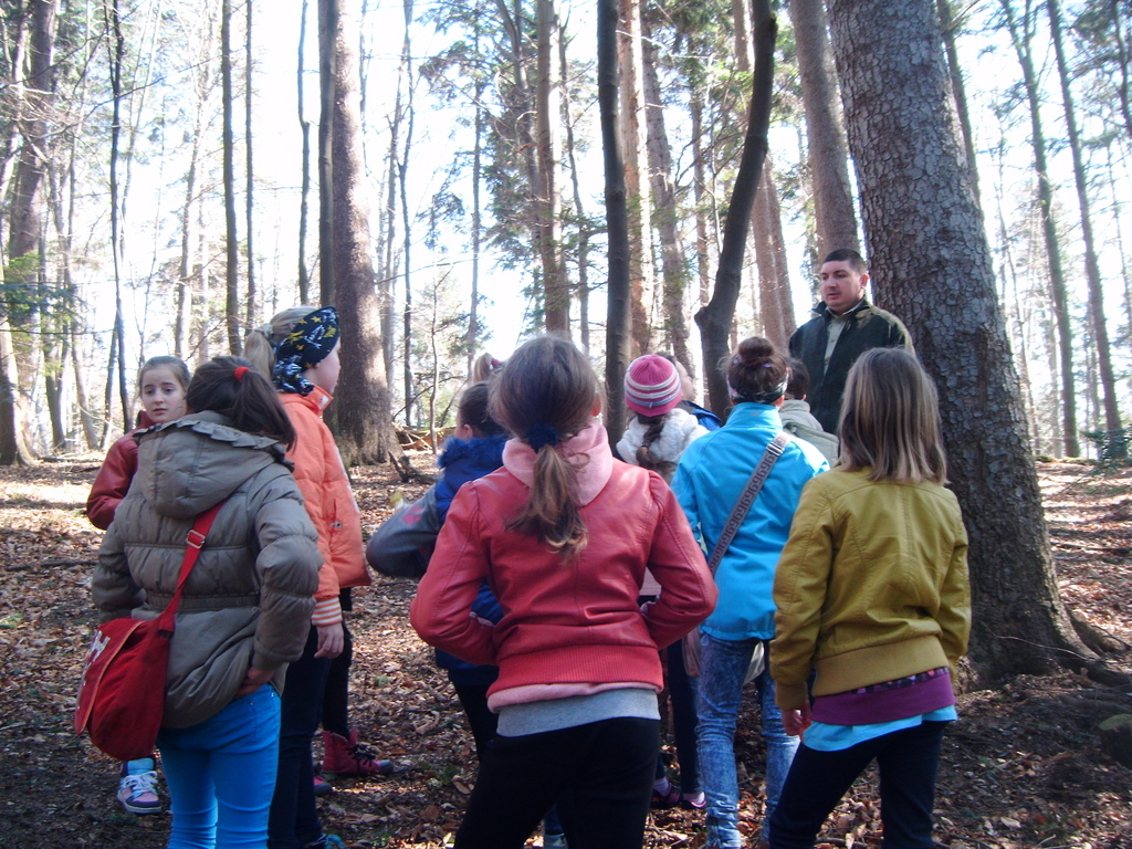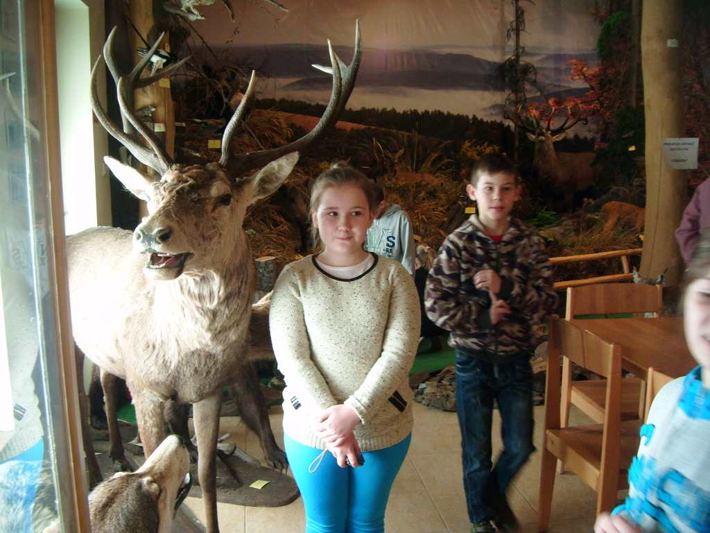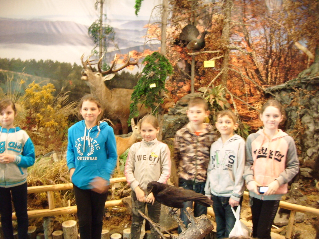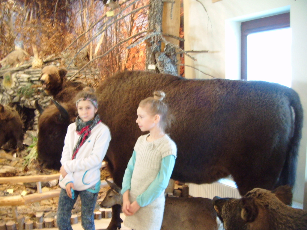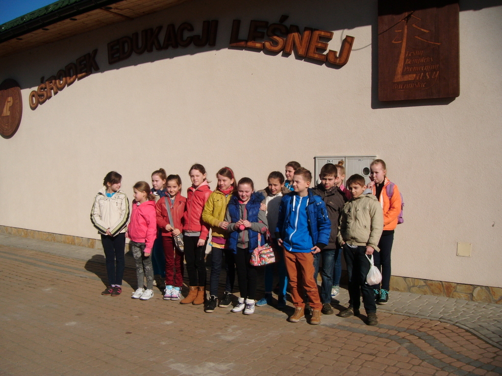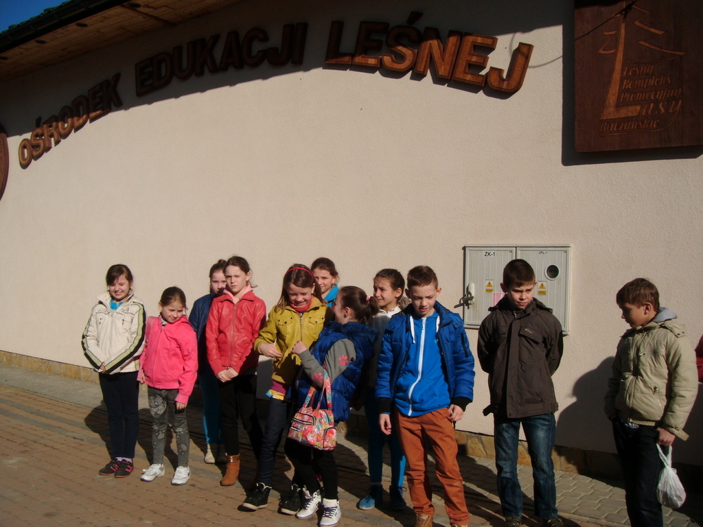 Twarzą w twarz z niedźwiedziem, żubrem i wilkiem (na szczęście nieżywymi) uczniowie kl. IV stanęli 13 marca w Leśnym Kompleksie Promocyjnym Lasów Birczańskich. Wybrali się tam na lekcję i ścieżkę edukacyjną wraz ze swoją wychowawczynią i rodzicami. Na początku obejrzeli w sali edukacyjnej licznie zgromadzone eksponaty (wypchane i odpowiednio spreparowane zwierzęta, ptaki), a potem wysłuchały odgłosów zwierząt np. jelenia, sarny, wilka, lisa. Następnie dzieci obejrzały film pt. "Wycieczka do lasu", gdzie był przedstawiony las o każdej porze roku. Dowiedziały się tam m. in. że pierwiosnek to nie tylko kwiatek, ale również ptak, a jeden z gatunków motyli to... admirał. Potem dzieci obejrzały bajkę pt. "Dzik Ryjo" i udały się wraz z przewodnikiem na ścieżkę edukacyjną do rezerwatu "Krępak", gdzie nauczyły się rozpoznawać buk i sosnę oraz dowiedziały dlaczego nie wolno zrywać wiosennych kwiatów! Wycieczka zakończyła się ogniskiem z pieczonymi kiełbaskami oraz... zadaniem dla dzieci: podczas pobytu na "Krępaku" dzieci usłyszały głos ptaka o nazwie kowalik. Pan prowadzący zajęcia polecił dzieciom narysować tego ptaszka i dowiedzieć się o nim jak najwięcej. Zobaczymy kto najlepiej wykona zadanie!