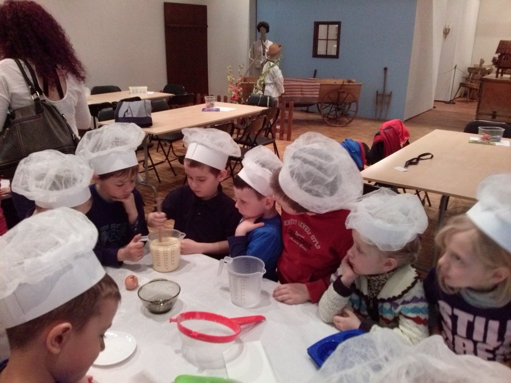 W dniu 15 kwietnia 2014 r. uczniowie klasy 0 wraz ze swoimi wychowawczyniami: p.Beatą Kasprzyk i p.Urszulą Pekaniec oraz rodzicem p. Joanną Fill gościli w przemyskim oddziale Muzeum Narodowego. Tam uczestniczyli w niezwykłych zajęciach. W starodawnej chacie (jedna z ekspozycji w muzeum) zapoznali się z tradycją pieczenia chleba. Namacalnym efektem tych zajęć był własnoręczny wyrób i wypiek wielkanocnych babeczek. Upieczone babeczki, dzieciaki zabrały jako prezent do domu. Jadna z babeczek trafiła także do rąk pana dyrektora. Przy okazji wizyty w muzeum uczestnicy zwiedzili także ekspozycję związaną z Twierdzą Przemyśl (duże wrażenie zrobiły efekty strzelania i wybuchów). Wyjazd zorganizowany przez panią Beatę Kasprzyk był bardzo udany i już dziś wszyscy czekają na następny.